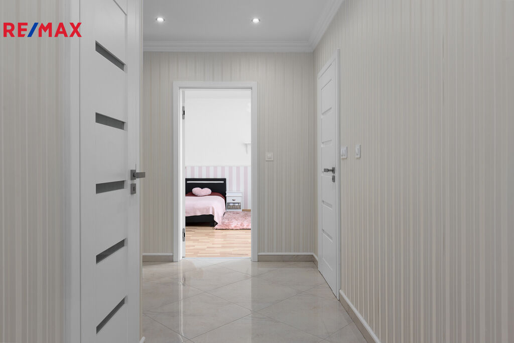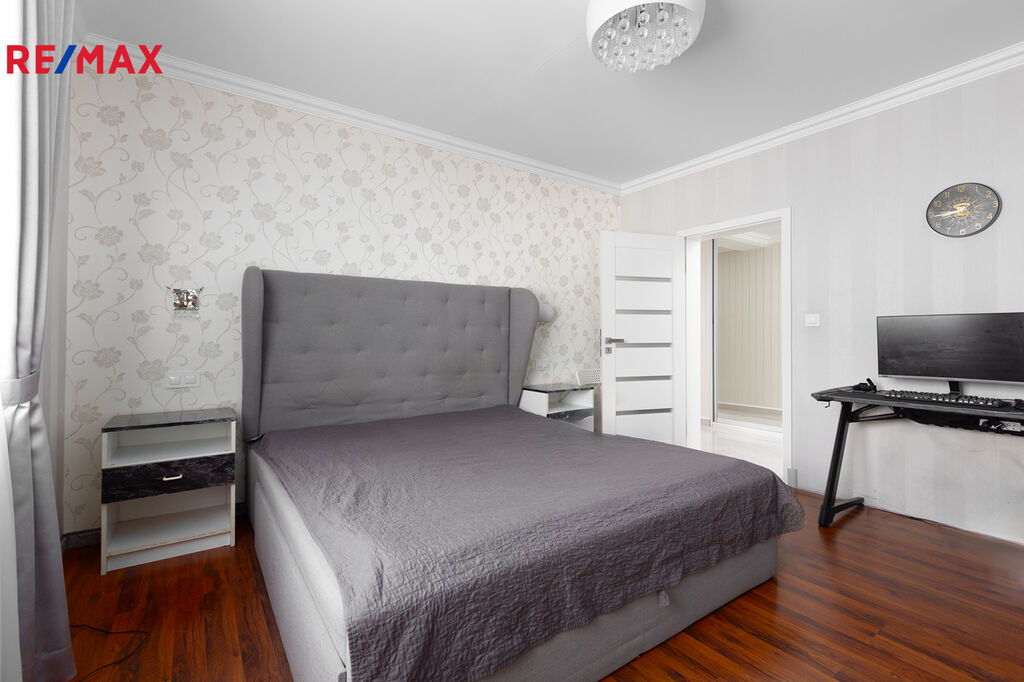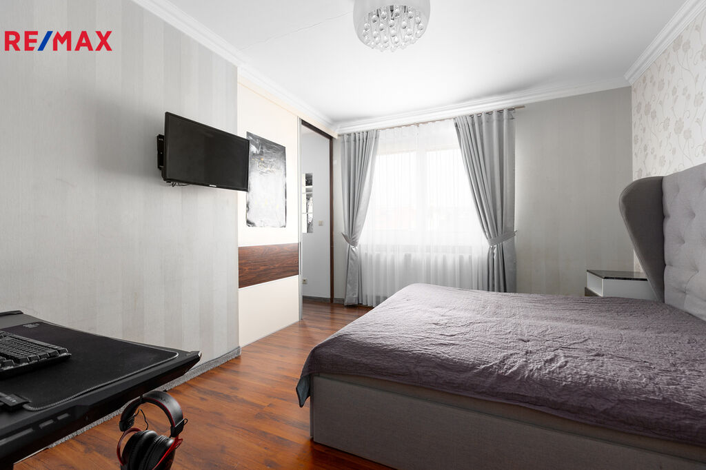 Byt disponuje dvěma ložnicemi. Hlavní ložnice má prostornou šatnu, která nabízí dostatek úložného prostoru a přispívá k celkové organizaci bytu. Druhá ložnice má vstup na balkon, což vytváří ideální místo pro ranní kávu nebo odpočinek.