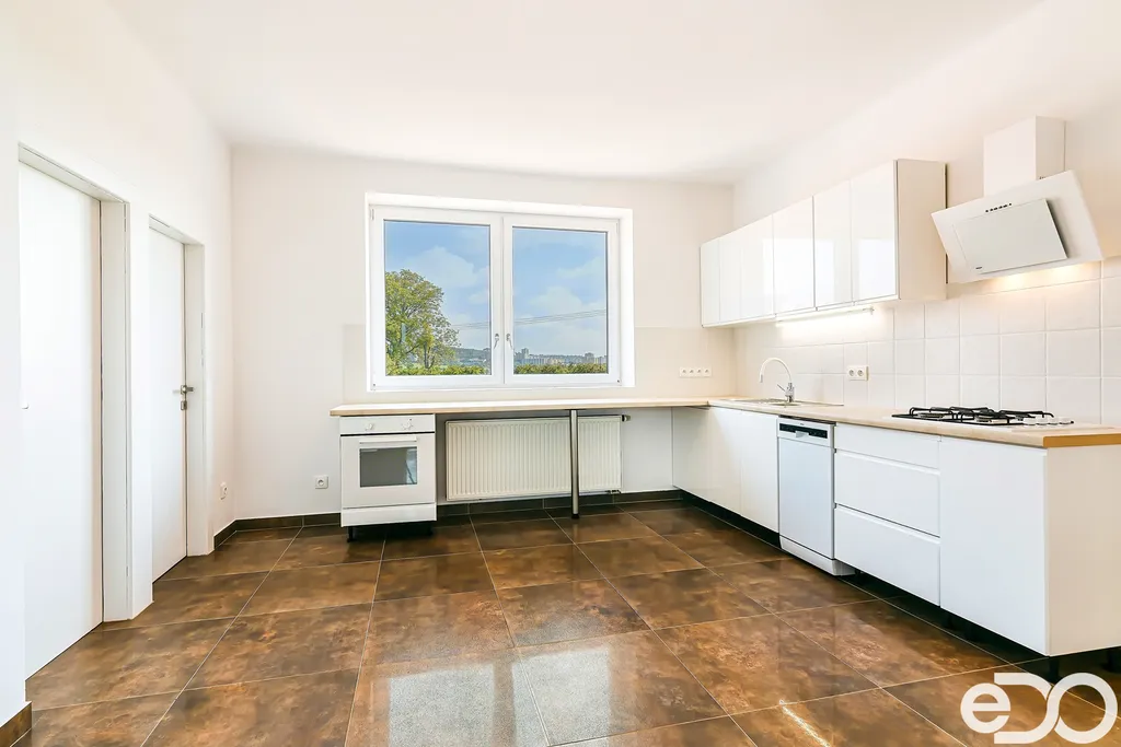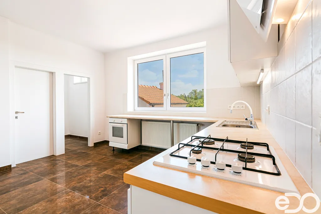 V kuchyni byla instalována nová kuchyňská linka včetně spotřebičů – elektrická trouba, plynová varná deska, myčka, digestoř.