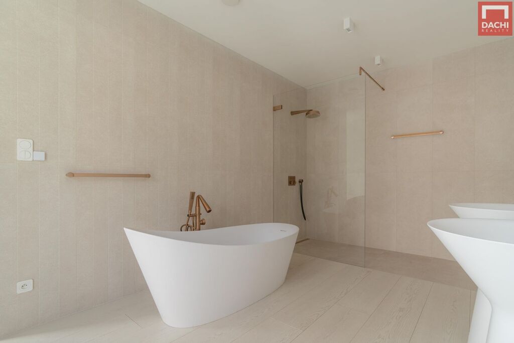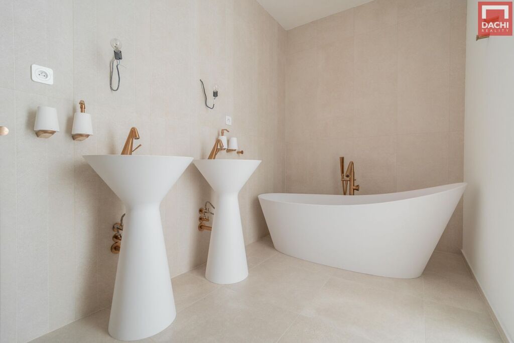 Dispozice zahrnuje tři samostatné ložnice, přičemž komfortní zázemí pro každodenní užívání zajišťují dvě samostatné toalety, každá vybavená bidetem a umyvadlem, a dále dvě plnohodnotné koupelny, které jsou navrženy ve vysokém standardu vždy s dvěma umyvadly, prostornou sprchou i vanou. Hlavní koupelna, která je přístupná přímo z ložnice, navíc vytváří atmosféru soukromého spa, ideální pro chvíle relaxace a klidu.
