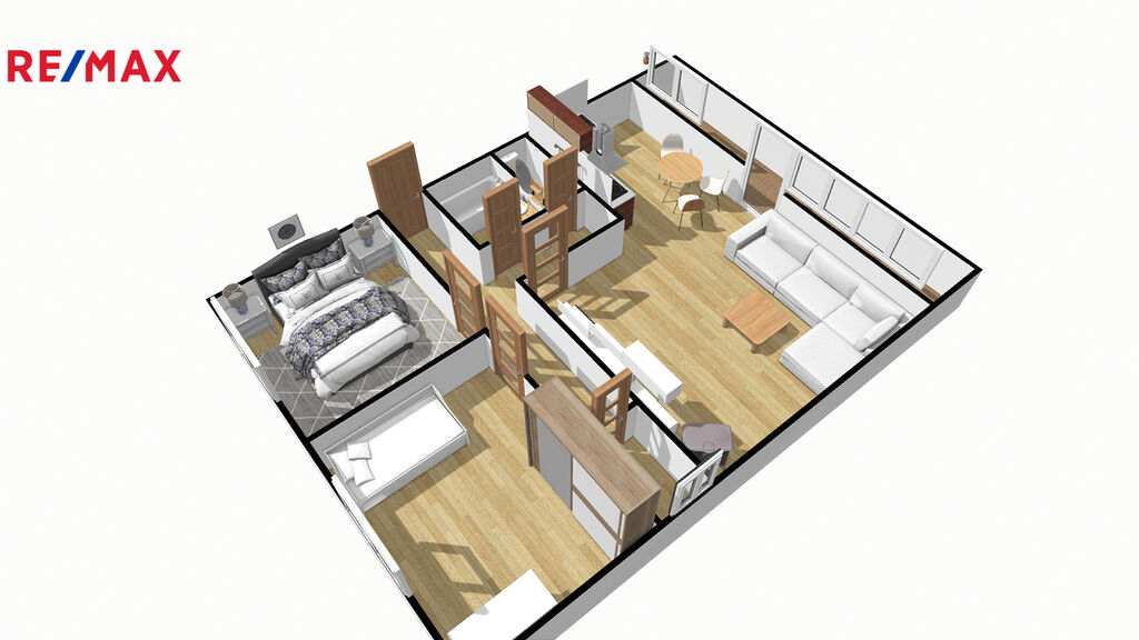 Samotný byt má užitnou plochu 72 m², což poskytuje dostatek prostoru pro pohodlné bydlení. Součástí bytu je také sklep o velikosti 2,5 m², ideální pro uskladnění sezónních věcí a dalších nezbytností. V obytných prostorách najdete částečné vybavení, což vám umožní vytvořit si domov podle vlastních představ. Byt se skládá z kuchyně o velikosti 8,30 m2,obývacího pokoje o velikosti 24 m2, ložnice o velikosti 10,6 m2, dětského pokoje o velikosti 14 m2, koupelny, WC, komory, předsíně a prostorné zasklené lodžie orientované na západ.