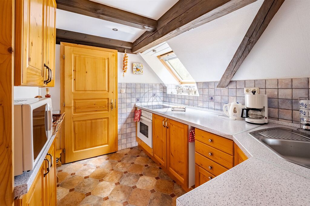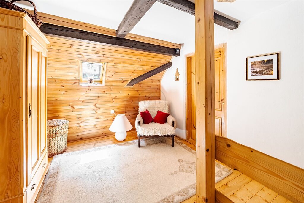 • 2+1 uvítá zádveřím a komorou, v patře se potom nachází prostorný obývací pokoj s otevřeným podhledem na dřevěný krov, dále je k dispozici vlastní kuchyně, koupelna a ložnice s dodatečnou kapacitou lůžek ve vyvýšeném podkroví.
