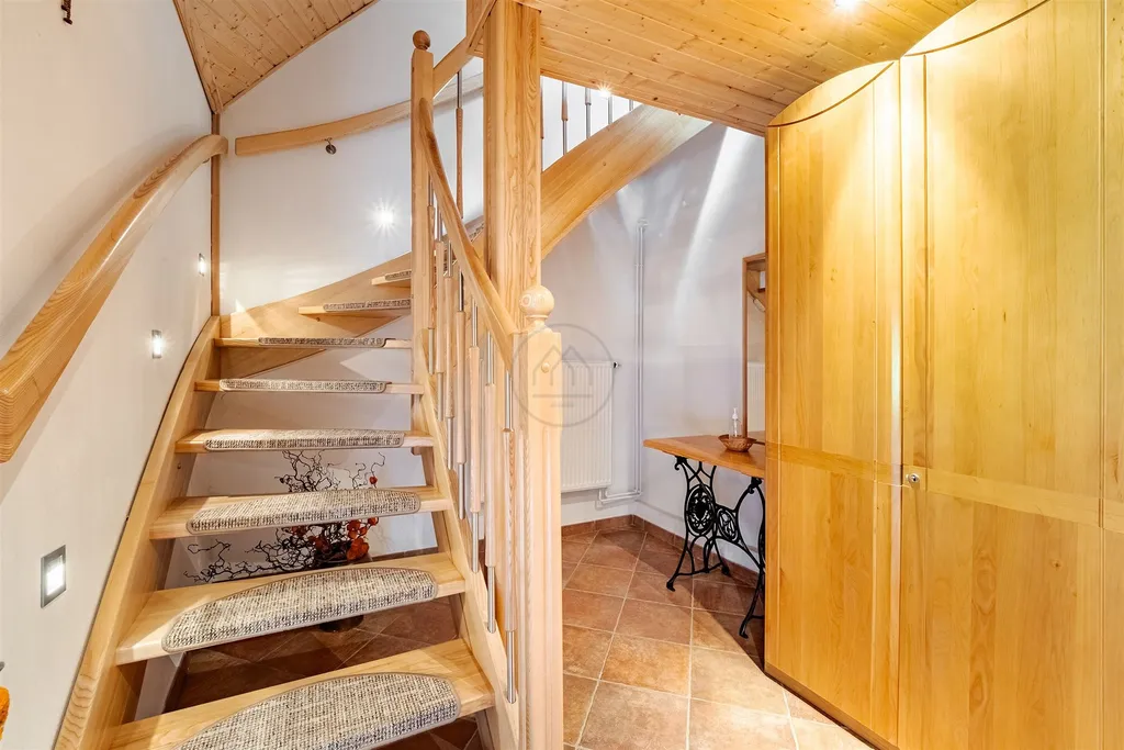 • 3+1 disponuje zádveřím, technickou místností, koupelnou se saunou a samostatným WC. Dále prostor navazuje na rozsáhlý obývací pokoj a kuchyni se spíží. V podkroví jsou dvě útulné ložnice, galerie a komora.