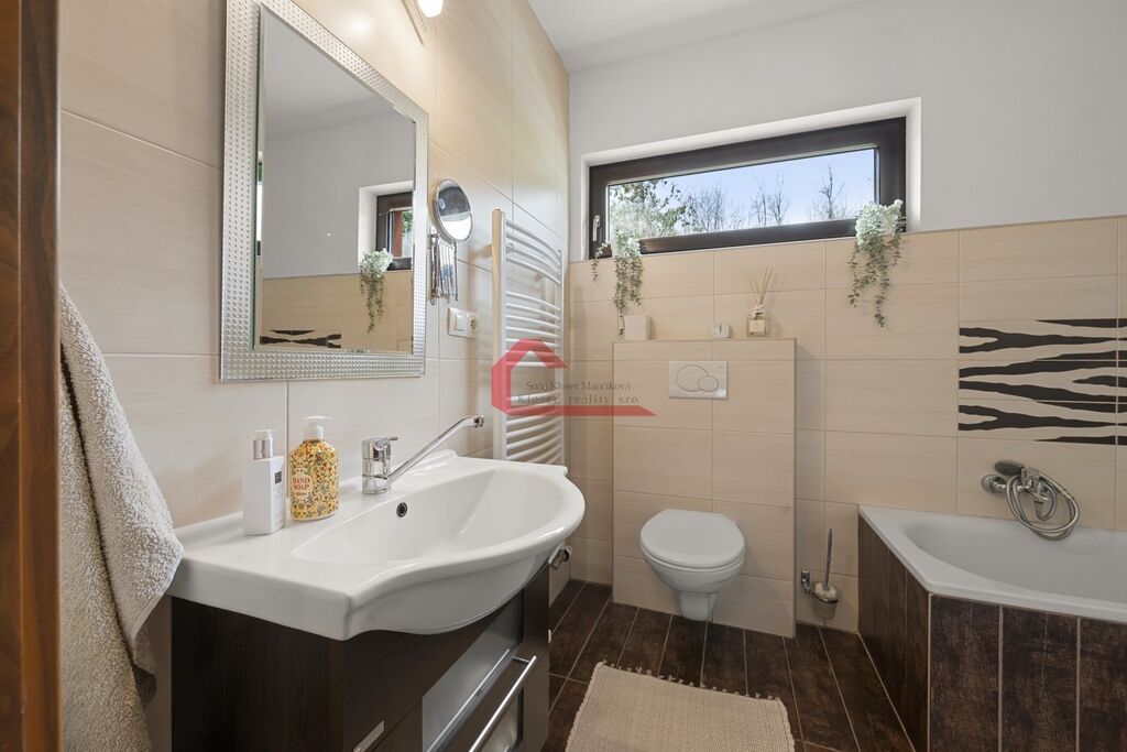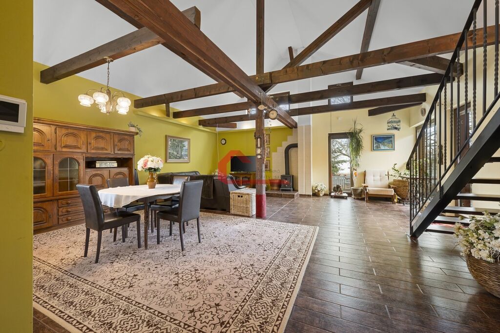 Nemovitost je vybavena moderními prvky, včetně kuchyňské linky, sprchového koutu, vany a litinových krbových kamen (8-9KW), které zajistí příjemné a útulné bydlení. V obývacím prostoru je podlahové vytápění, což přispívá k vysokému komfortu.