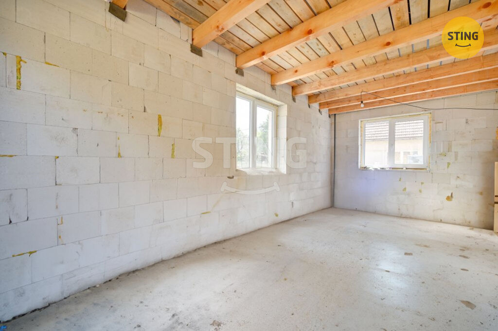 Chybí rozvody vody/elektro/topení, omítky, potěry, sanita a zdroj tepla. Orientační náklad 700 tisíc. K dispozici půdorysy, projektová dokumentace a právní servis.