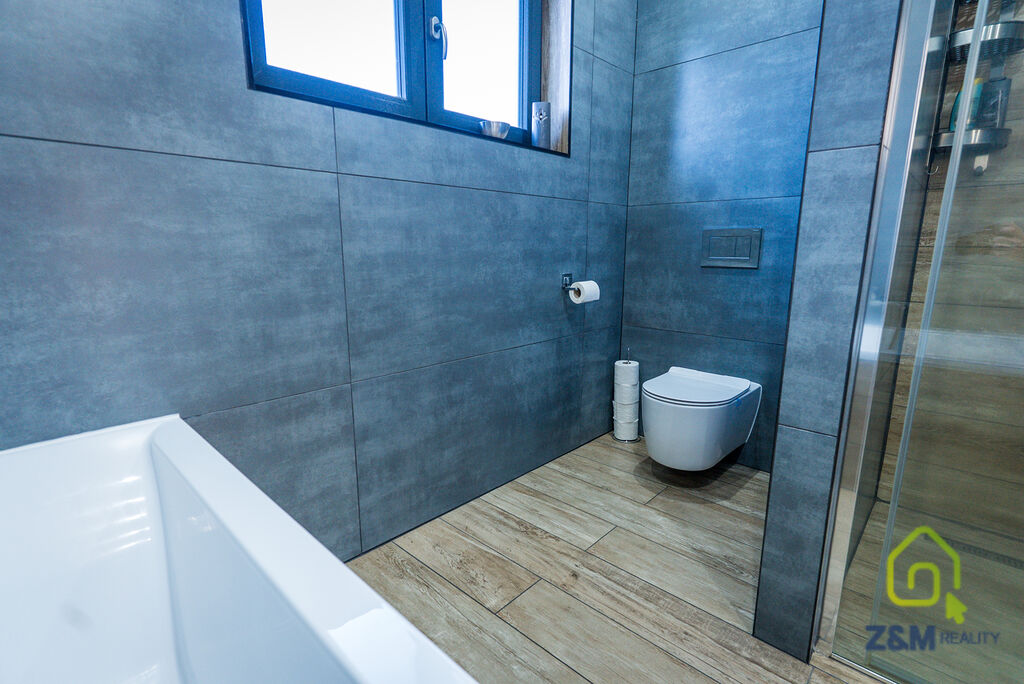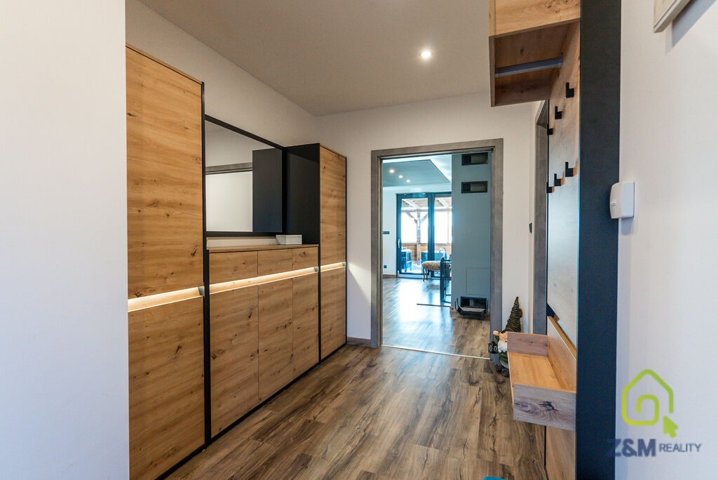Dům je vybaven moderním interiérem , s krásnou stylovou kuchyní ,okna jsou plástová v barvě antracitu vyztužena ocelovým rámem a trojskla vnitřní dveře jsou obložkové bez falcové. Hlavní okna jsou opatřeny žaluziemi CLIMAX 90 Z, každá žaluzie je řízena radiovým signálem v každé místnosti samostatně a celý okruh lze řídit i z jedné časti.