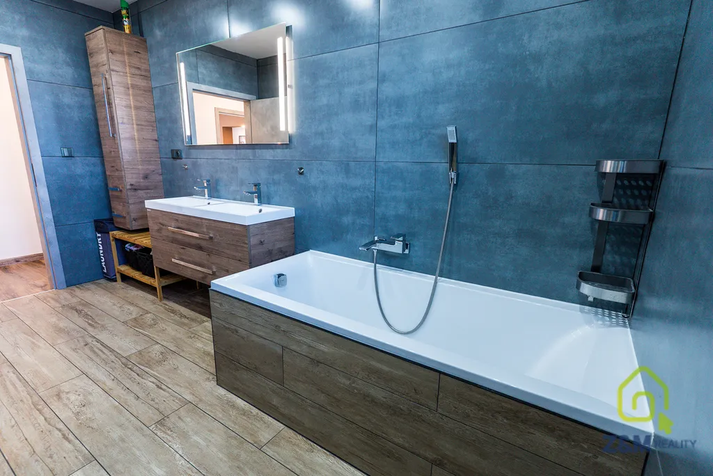 Jedná se o RD v dispozici 4kk s technickou místností a spíží, s podlahovou plochou 124m2 vytápěnou tepelným čerpadlem napojeným na klasická topná tělesa v kombinaci s podlahovým vytápěním a možností využití krbu v obýváku ,který tvoří dominantu stavby. Tepelné čerpadlo značky NIBE s výkonem 6kW s venkovní jednotkou vnitřní jednotkou pro ohřev teplé vody se 130 litrovým zásobníkem. Rozvod tepla pomocí podlahového vytápění (3 pokoje jsou vybaveny radiátory a koupelna je vybavena jak podlahovým topením, tak koupelnovým žebříkem).
