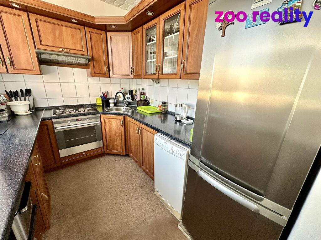 Nově nabízíme k prodeji byt 4+1 o celkové ploše 86m2 v 6NP panelového domu na ulici Teličkova v místní části Přerova - Předmostí. Byt prošel od výstavby domu v roce 1984 několika opravami, které zahrnovali mimo jiné rekonstrukci koupelny a kuchyně. Kuchyně je dostatečně velká, aby zde našla místo myčka na nádobí, lednice s mrazákem, plynový vařič a zároveň i velká pracovní plocha. V loňském roce byly vyměněny rozvody elektřiny do mědi po celém bytě, nataženy nové omítky a vyměněny žaluzie. Na podlahách je položené PVC, koberce a dlažba. Dům je po celkové revitalizaci, tj, zateplen, vyměněna okna, nový bezbariérový výtah s nástupem z obou stran. Lodžii si majitelé nechali zasklít posuvnými okny na vlastní náklady. K bytu náleží sklepní kóje a lze využívat i společné prostory domu jako je kolárna nebo kočárkárna. Parkování je možné ze tří stran kolem domu a navíc se má v blízkosti domu ( cca 2 min. chůze ) vybudovat podzemní parkovací dům... Doporučuji prohlídku