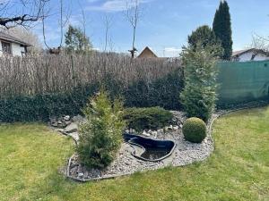 Přístup na zahradu je zajištěn po zpevněné komunikaci, což zaručuje pohodlný příjezd. Na pozemku se nachází hřiště a parkové stání. Na zahradě najdeme ovocné stromy a okrasné keře.