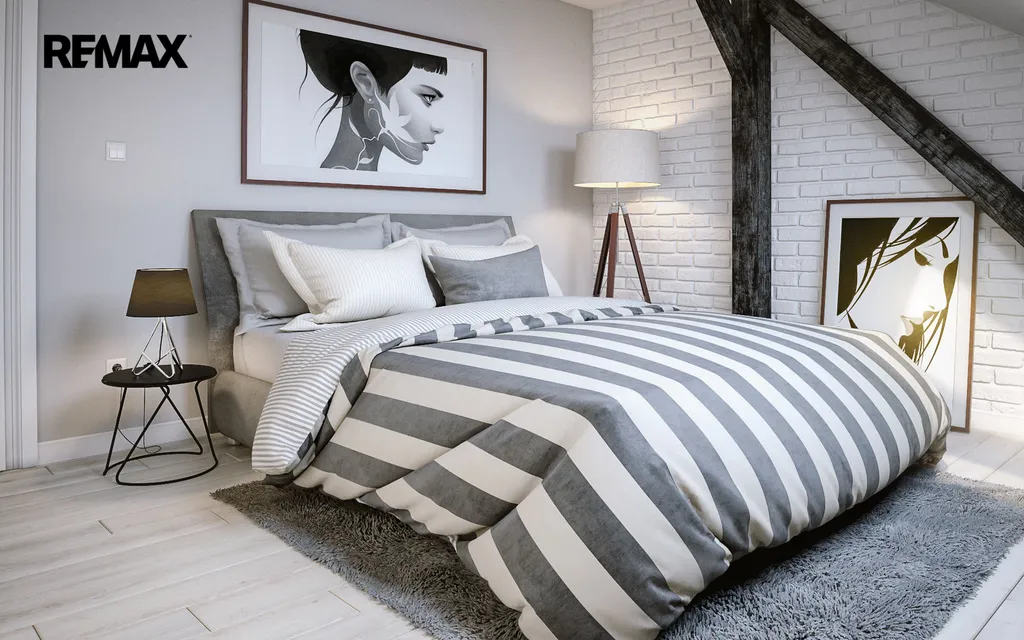 Po točitém schodišti se dostanete do horního patra bytu, kde je chodba s postupnými vstupy do koupelny s vanou a WC, hlavní ložnice a 2 samostatných pokojů. Naproti schodišti je také praktická šatna.
