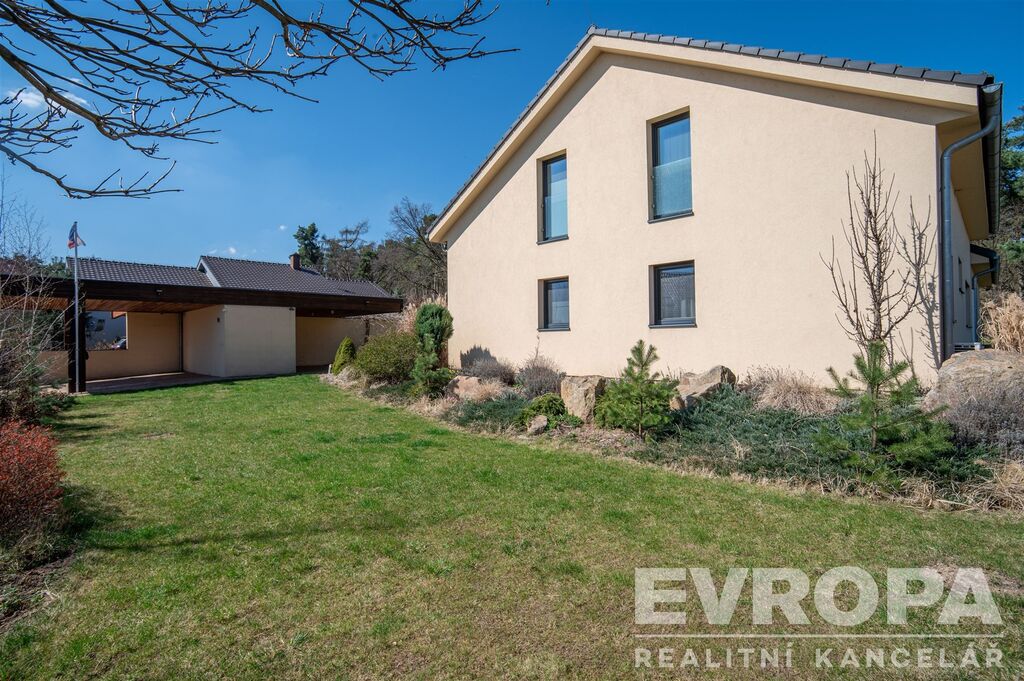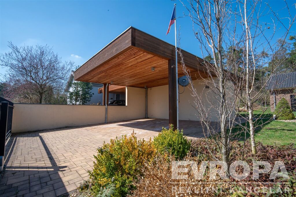 Na pozemku je zastřešené parkovací stání s technickou stavbou, dálkově ovládaná vjezdová vrata, celý pozemek je oplocen. K domu je pro vážné zájemce k dispozici projektová dokumentace stavby. Dům byl postaven ve vysokém nadstandardu pro účely rodinné rekreace významné české osobnosti.