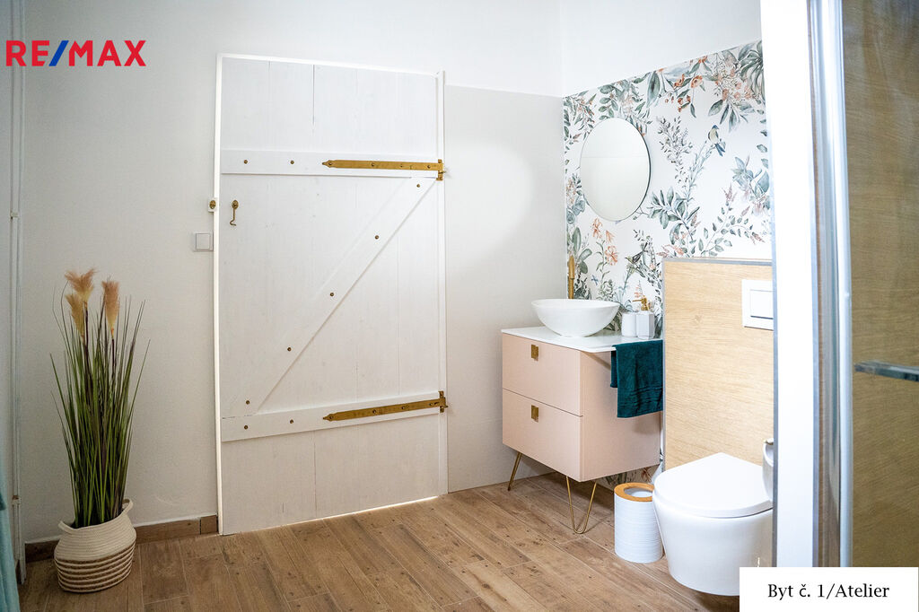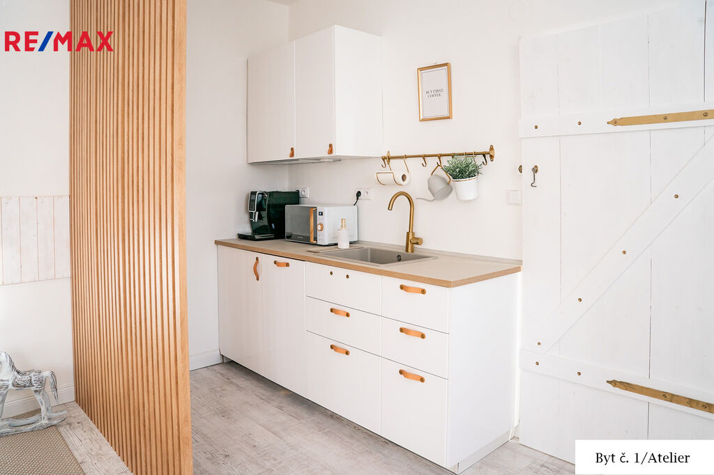 Byt č. 1 (2+kk, 61 m²): Kompletně zrekonstruovaný přízemní byt, aktuálně využívaný jako úspěšné Airbnb. V zimě funguje jako jógové studio s plnou obsazeností. Lze využít i jako fotoateliér nebo salón. Přímý vstup z ulice zajišťuje soukromí ostatních obyvatel.