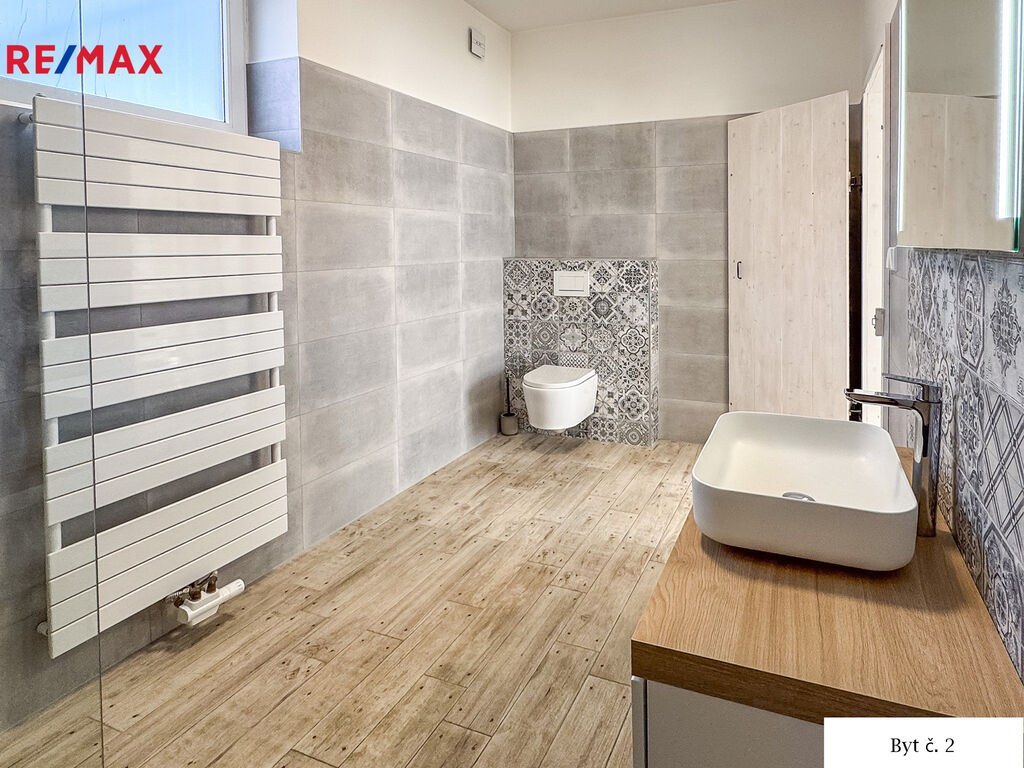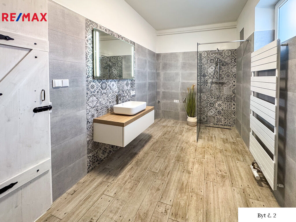 Byt č. 2 (3+kk, 55 m²): Světlý přízemní byt po rekonstrukci, orientace na JZ. Vhodný pro pronájem nebo ubytování hostů.