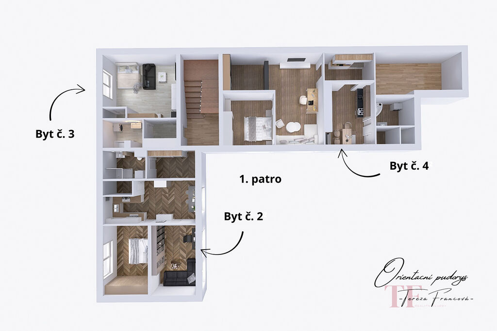 Byt č. 4 – 2+1, cca 75 m² (1. patro)