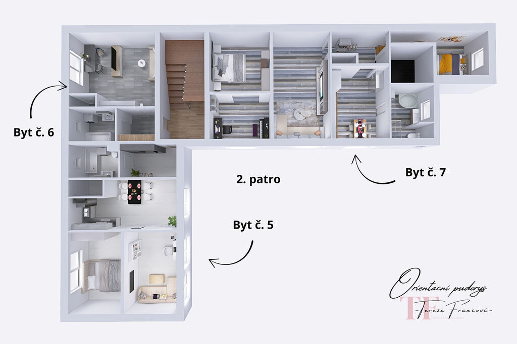Byt č. 7 – 3+1, cca 84 m² (2. patro)