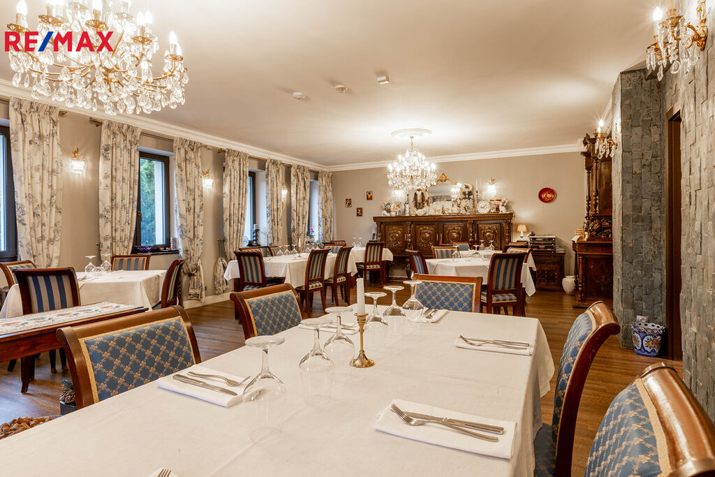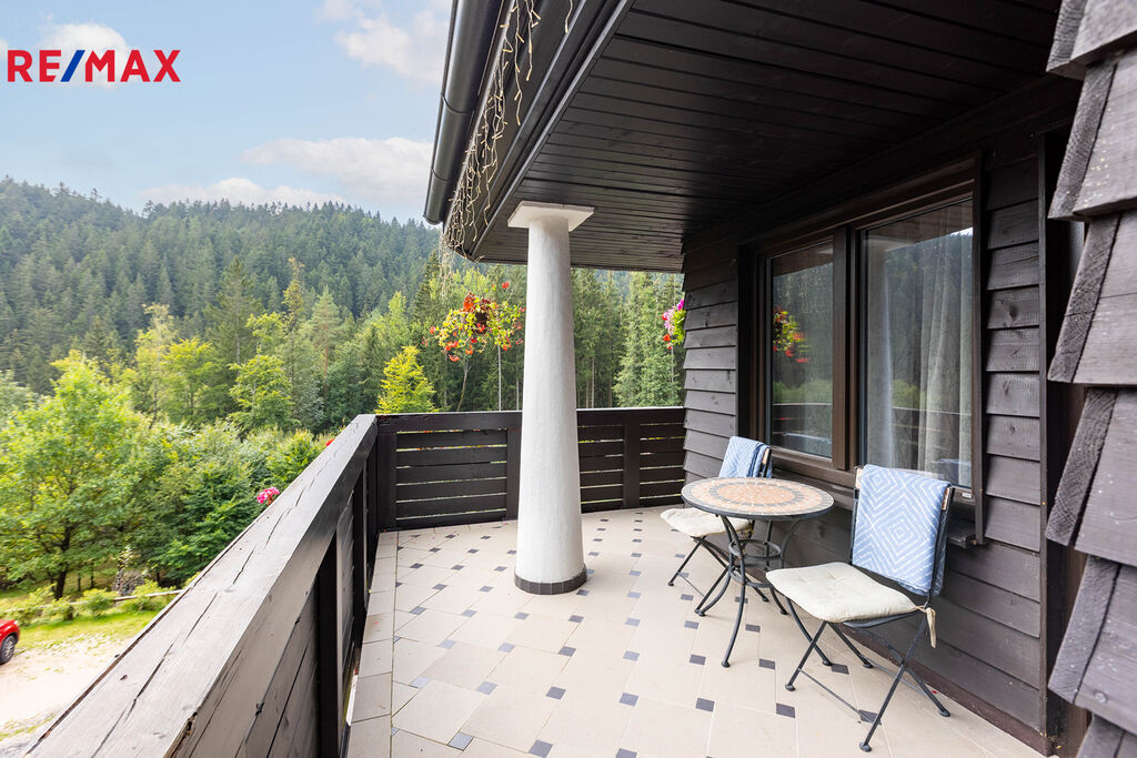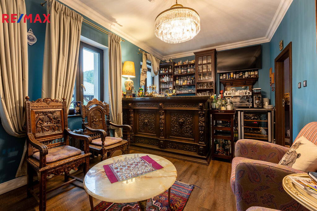 Interiér domu nabízí kombinaci tradičního stylu a moderního komfortu. Masivní dřevěné trámy, pečlivě opravené kamenné zdi a útulné krby vytvářejí jedinečné prostředí, kde se můžete nechat unášet vůní dřeva a praskáním ohně. Každý pokoj je navržen s ohledem na maximální pohodlí a propojení s okolní přírodou – velká okna poskytují dechberoucí výhledy na lesy, které se mění s každým ročním obdobím.
