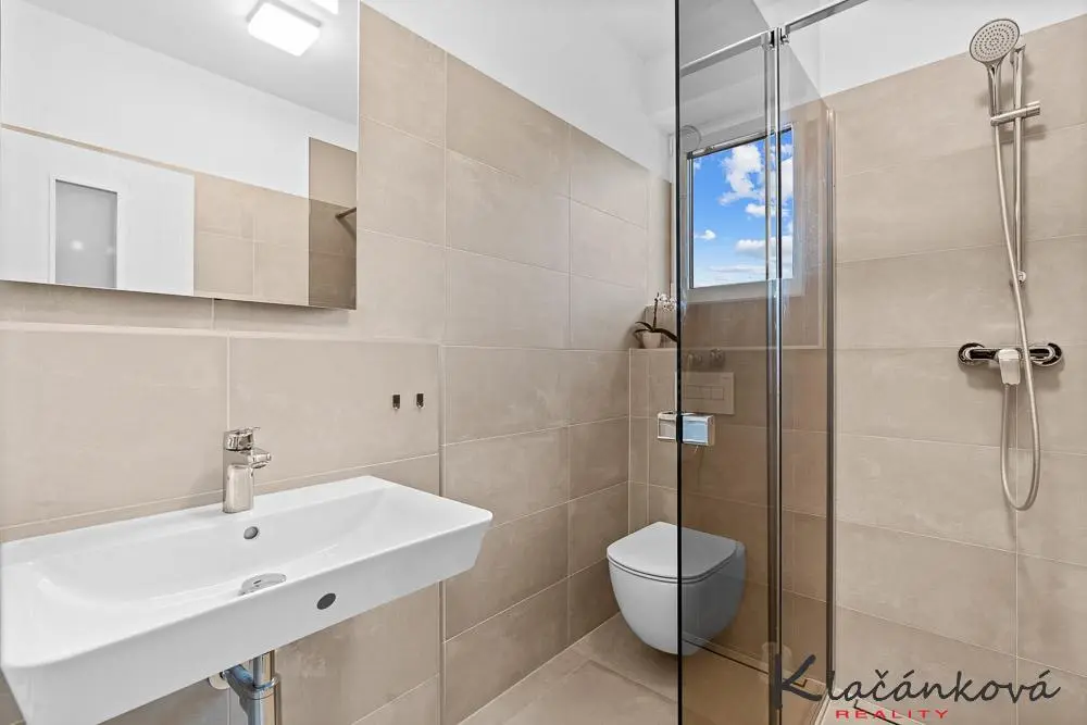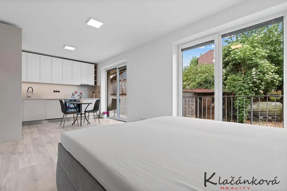 Nabízíme k prodeji novostavbu bytu 1kk, o rozloze 32m2, ve druhém patře domu. Jedná se o prosluněný byt s orientací J/Z strany. Elegantně sladěný .Kompletně vybaven kuchyňskou linkou, vyrobenou na míru od Machálek interiér /vestavěné spotřebiče - lednice, myčka, trouba, varná deska /. Zařízení bytu nové, kvalitní s dostatkem úložného prostoru, vyrobeno na míru. Kuchyń v kvalitním provedení v bílém a kašmírovém hlubokém matu. Dřez a baterie Franke. Spotřebiče Gorenje. V bytě podlahové vytápění - vodní./ poháněno tepelným čerpadlem - voda/vzduch/. K bytu náleží terasa o rozloze 9,6m2, sklep, a parkovací stání možno dokoupit. /390 tis. Kč/ Novostavba kolaudována v listopadu r. 2023. Bydlení v klidné, velmi žádané lokalitě Pod Hradem. Jedná se o bezbarierové bydlení. Nyní v bytě slušný, solventní nájemník. Možno koupit i s ním.