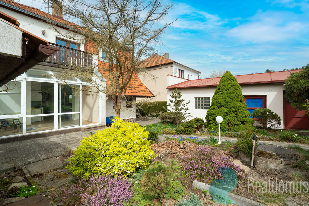 K domu náleží nádherná udržovaná zahrada s praktickým skleníkem, romantickým zákoutím pro opékání buřtů, dílnou pro kutily a garáží pro pohodlné parkování.