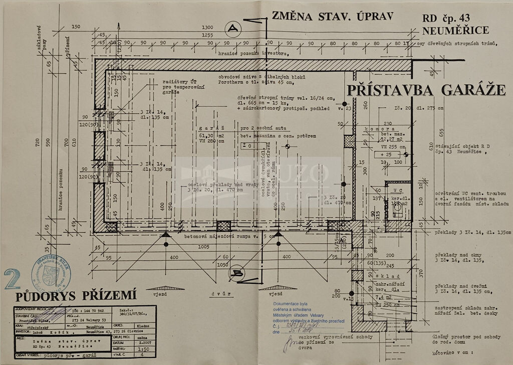 Nemovitost je ve stavu před dokončením, kde v 1.NP hlavní budovy je ve stavu obyvatelném. v podkroví jsou hotové komplet přípravy i sítě pro vestavbu, buď samostatné jednotky, nebo případně rozšíření stávající jednotky. Další možnost rozšíření je v podkroví nad garáží, kde je možné buď vybudovat samostatnou jednotku, nebo opět rozšíření stávající jednotky.