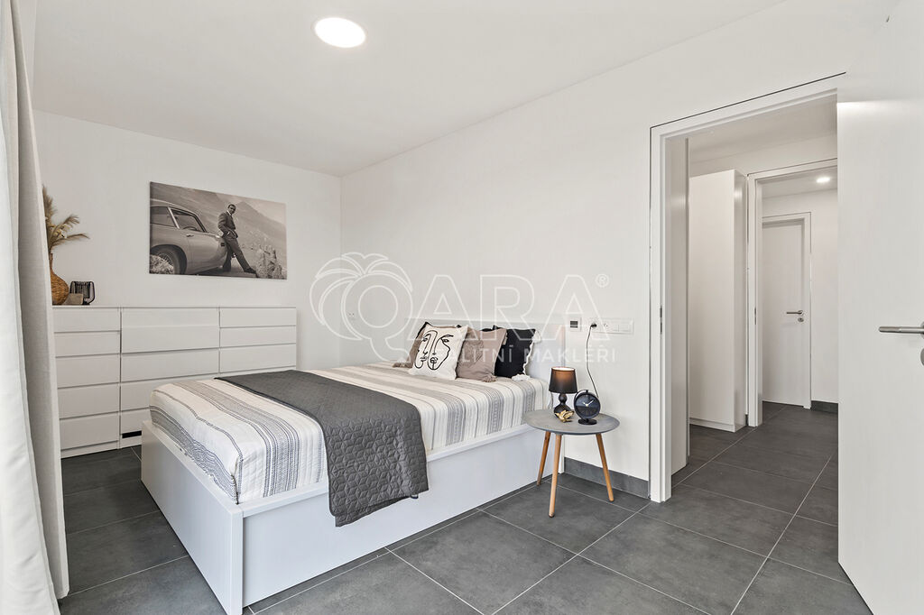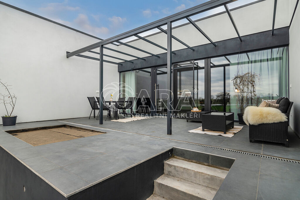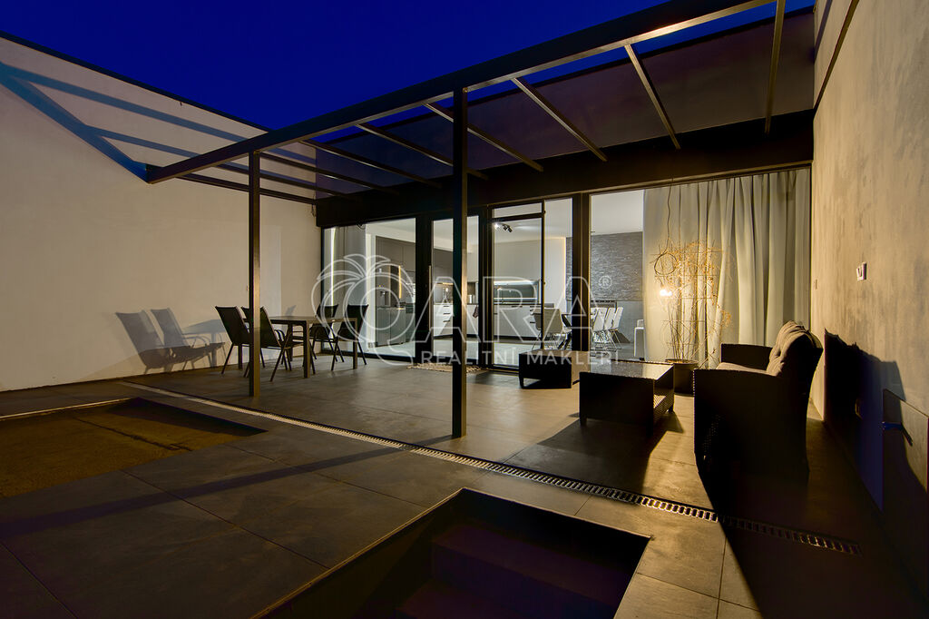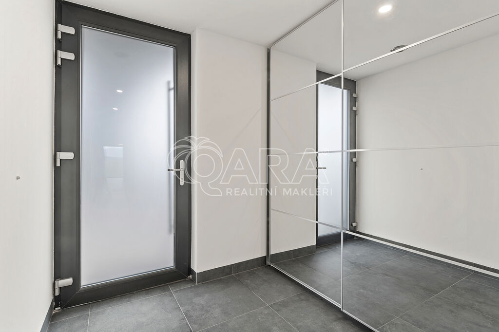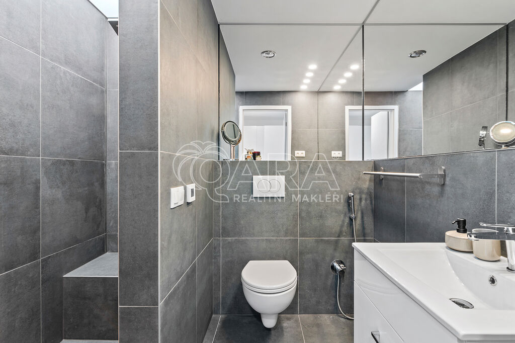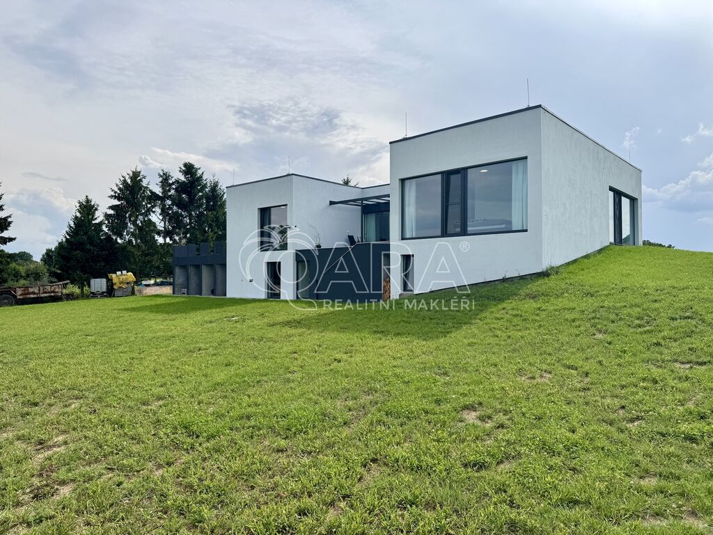 Tento dům je postavený s myšlenkou na dlouhá desetiletí, bez kompromisů a bez honby za módními výstřelky, které rychle zastarají. Interiéru dominují přírodní a poctivé materiály. Podlahy pokrývá velkoformátová dlažba, která není jen krásná na pohled, ale i mimořádně odolná vůči opotřebení. Stěny jsou vkusně doplněny dřevěnými obklady, které prostoru dodávají teplo a přirozenou eleganci. Barevné ladění v kombinaci bílé a antracitové působí nadčasově a čistě a umožní budoucímu majiteli jednoduše doladit interiér podle vlastního stylu.
