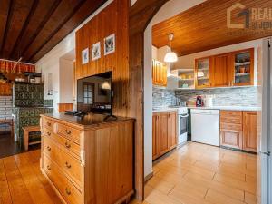 Nabízíme Vám za sníženou cenu krásnou a vyjímečnou chalupu s užitnou plochou 150 m² postavenou na pohodovém místě v klidné lokalitě Liberk - Rampuše. Chalupa nabízí téměř vše co si může moderní a náročný majitel přát. V přízemí si může nový majitel užívat slunečnou terasu před domem, prostornou kuchyň a obývací pokoj s krásnými kachlovými kamny . Dále dětskou hernu-pokoj, dospěláckou hernu s krbem , kulečníkem a pohodovým vnitřním posezením. Dalšími vychytávkami chalupy jsou celodřevěnná sauna a relaxační fit místnost s větší USSPA masážní vanou . Krb je oboustranný se společnou zadní stěnou, je tedy možno topit jak v herně, tak na venkovní sluneční terase. Komíny zděné, vyvložkované, střecha i stropy odizolované. První patro chalupy disponuje velkým balkonem a třemi ložnicemi vše provedeno ve dřevě. K relaxaci a odpočinku slouží i venkovní bazén , který je zasazen do kamemného lože. Nemovitost se nachází na pozemku o výměře cca 1.520 m² a je ve skvělém stavu. Jedná se o cihlovo-kamennou budovu s balkónem a terasou, které poskytují krásný výhled do okolí. Chalupa disponuje pěkným malým sklepem, kde je mimo jiné umístěna vodárna. Chalupa je kompletně zařízená. Tato nemovitost nabízí pohodlné bydlení a relax pro celou rodinu v klidném prostředí. Velkou výhodou je nejen bydlení v klidném místě, ale i malá vzdálenost větších lyžařských center Říčky v Orlických horách a Deštného v Orlických horách. Pro méně zkušené lyžaře a děti se nabízí ještě blíže položené sjezdovky ve Zdobnici. Nezmeškejte tuto skvělou nabídku! Jakékoli další informace a na případných prohlídkách se s Vámi velmi rád domluví náš realitní makléř Mgr. Radek Procházka