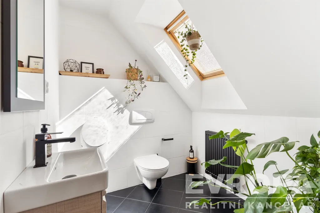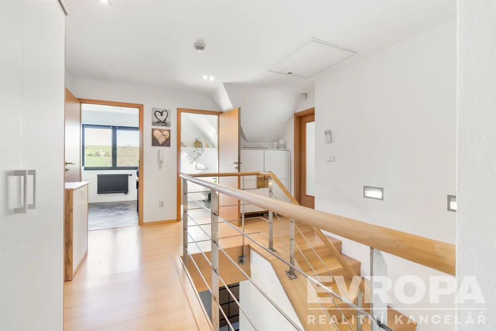 V patře najdete čtyři ložnice, koupelnu a samostatné WC. Nad druhým patrem je částečně pochůzná půda, ideální pro ukládání sezónních věcí.