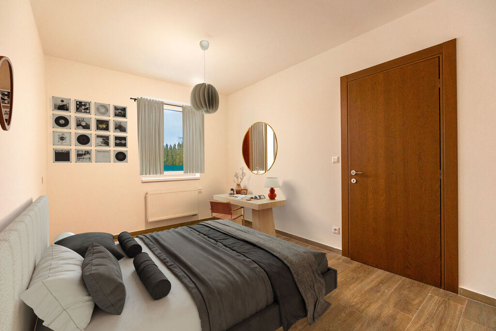 Vnitřní řešení bytových jednotek odpovídá moderním trendům v bydlení. Propojení obývací části s kuchyňskou nabízí větší variabilitu prostor a možnost uplatnit originální řešení. Výsledný otevřený prostor je působivý, vzdušný a jednotliví členové rodiny tak mohou být stále pohromadě.