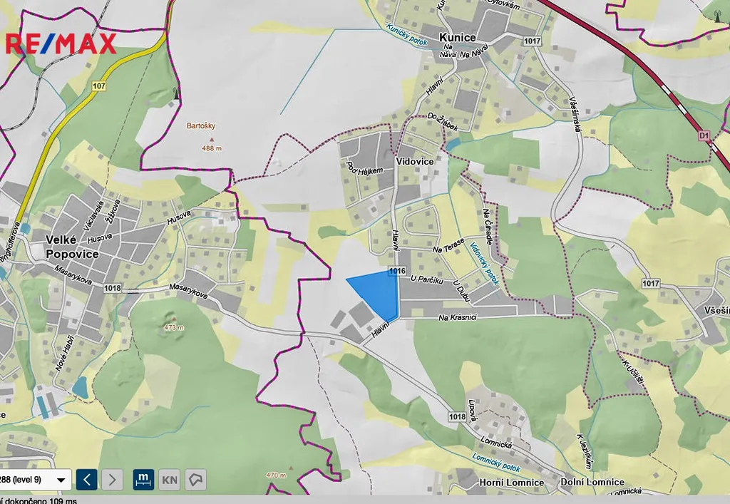 Pozemek se nachází v sousedství Přírodního parku Velkopopovicko. Příjemné bydlení zde umožňuje kombinace klidu, čerstvého vzduchu a přírody se snadnou dostupností Prahy. Nachází se v Kunicích - Dolní Lomnice mezi Velkými Popovicemi a Mirošovicemi.