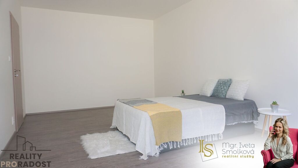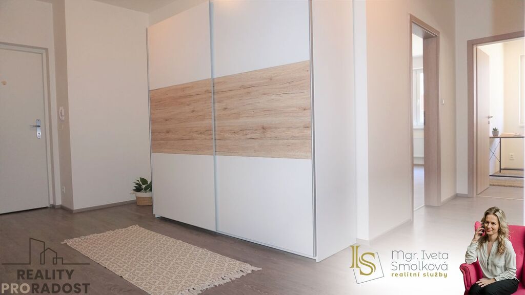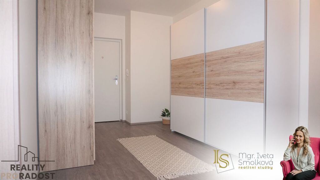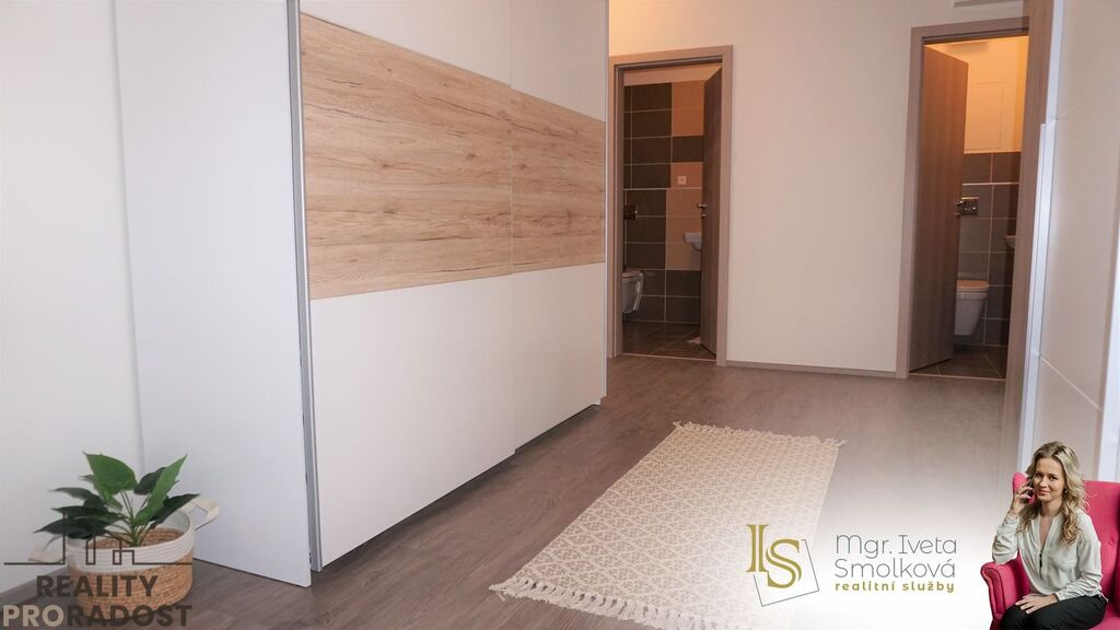 Samozřejmostí je kuchyňská linka s vestavěnými spotřebiči (indukční deska, el. trouba, digestoř, myčka) a lednice. V bytě dále najdete prostornou ložnici (22,4 m2), pokoj (12,6 m2), koupelnu s vanou a WC (5,7 m2), samostatnou toaletu s umyvadlem (1,5 m2)a komoru (3 m2) přímo v bytě. Zcela jistě oceníte velkou chodbu (17,9 m2) a dvě šatní skříně.