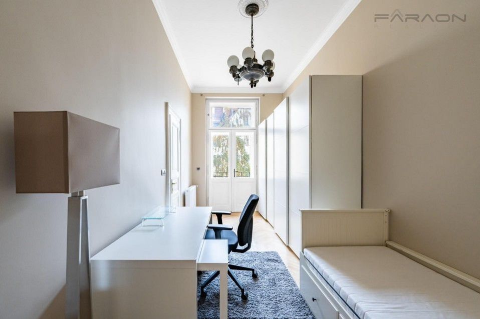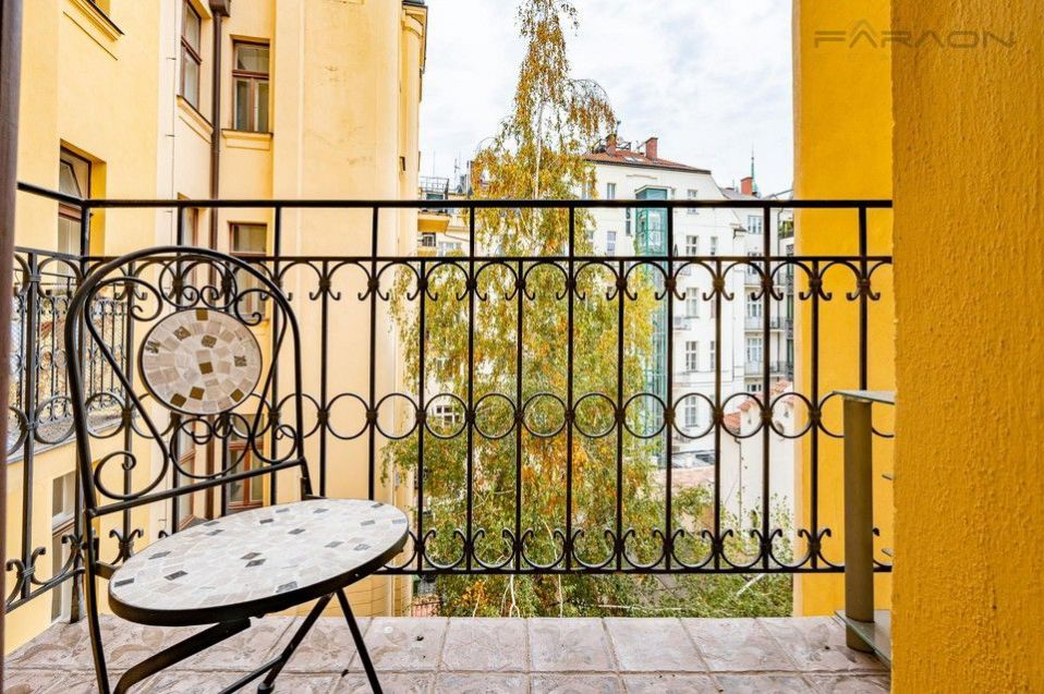 Nabízíme pronájem zařízeného luxusního bytu 4+1 135m2 v historickém centru Prahy u Staroměstského náměstí. Byt s obývacím pokojem, 2 ložnicemi, pracovnou a plně vybavenou kuchyní s kvalitními spotřebiči značky Bauknecht, je situován ve třetím patře secesního domu. Jak dům, tak samotný byt prošly komplexní rekonstrukcí. Větší ložnici zdobí unikátní arkýřová okna a v obývacím pokoji nechybí plně funkční kachlová kamna. Původní designová svítidla a masivní parkety ve všech místnostech.