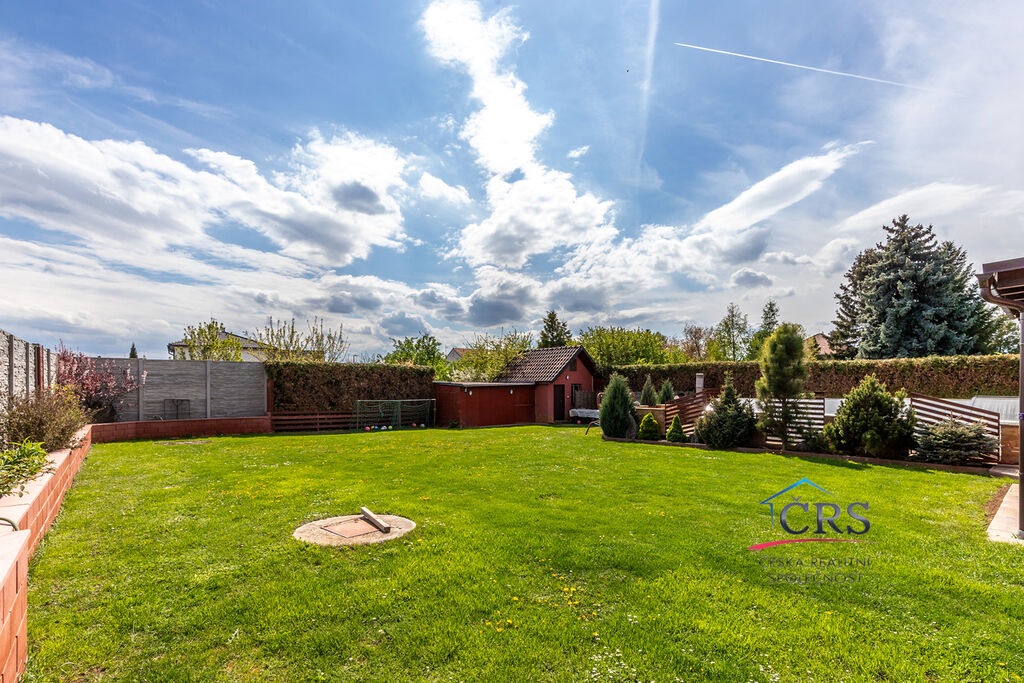 Na zahradě je k dispozici zděný zahradní domek pro uskladnění zahradního nábytku, nářadí či třeba sportovního vybavení. Velikou výhodou je studna na zahradě. Venkovní bazén o velikosti 4x8 m má celoroční zastřešení z plexiskla (písková filtrace).