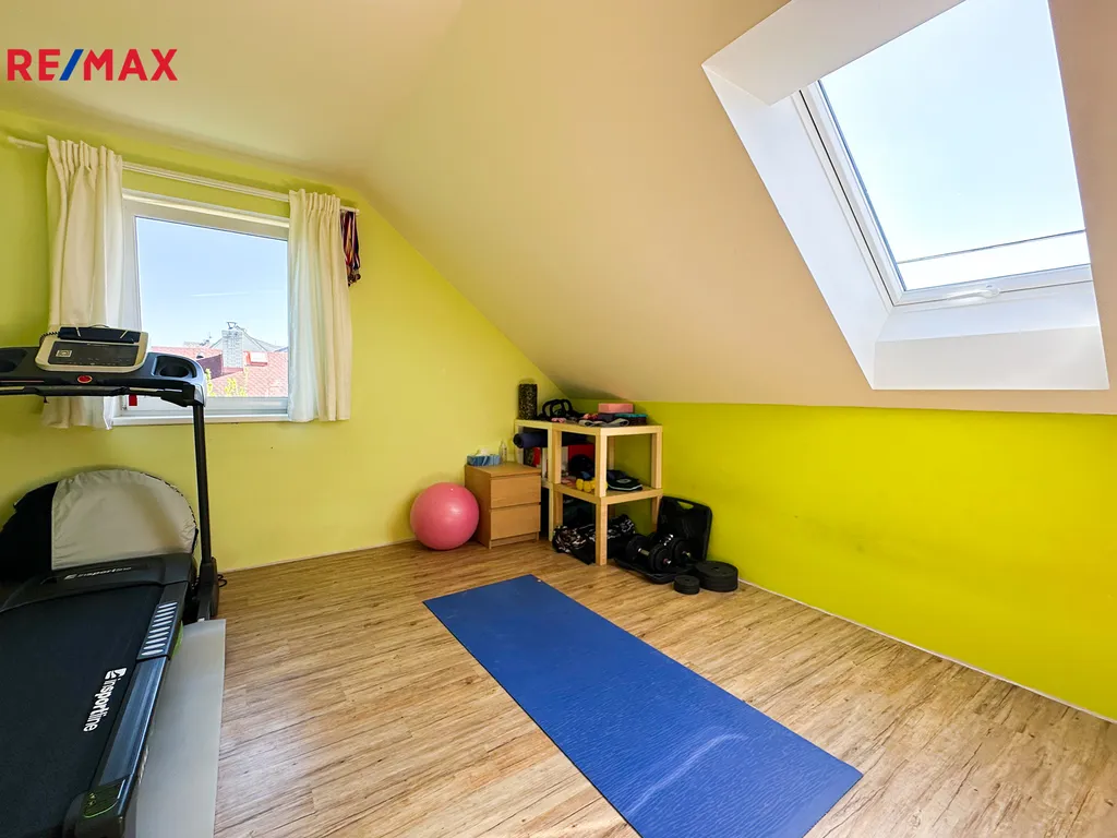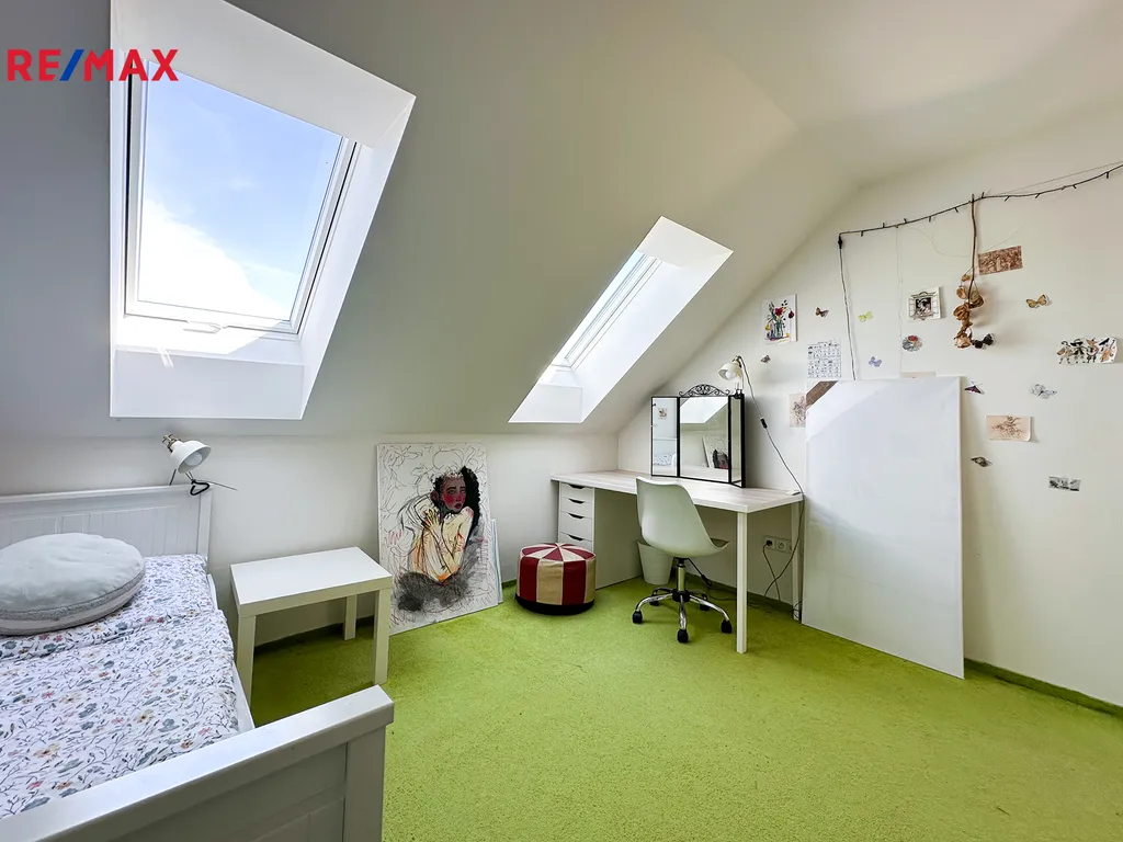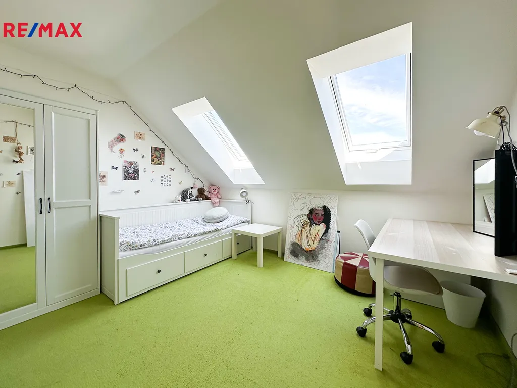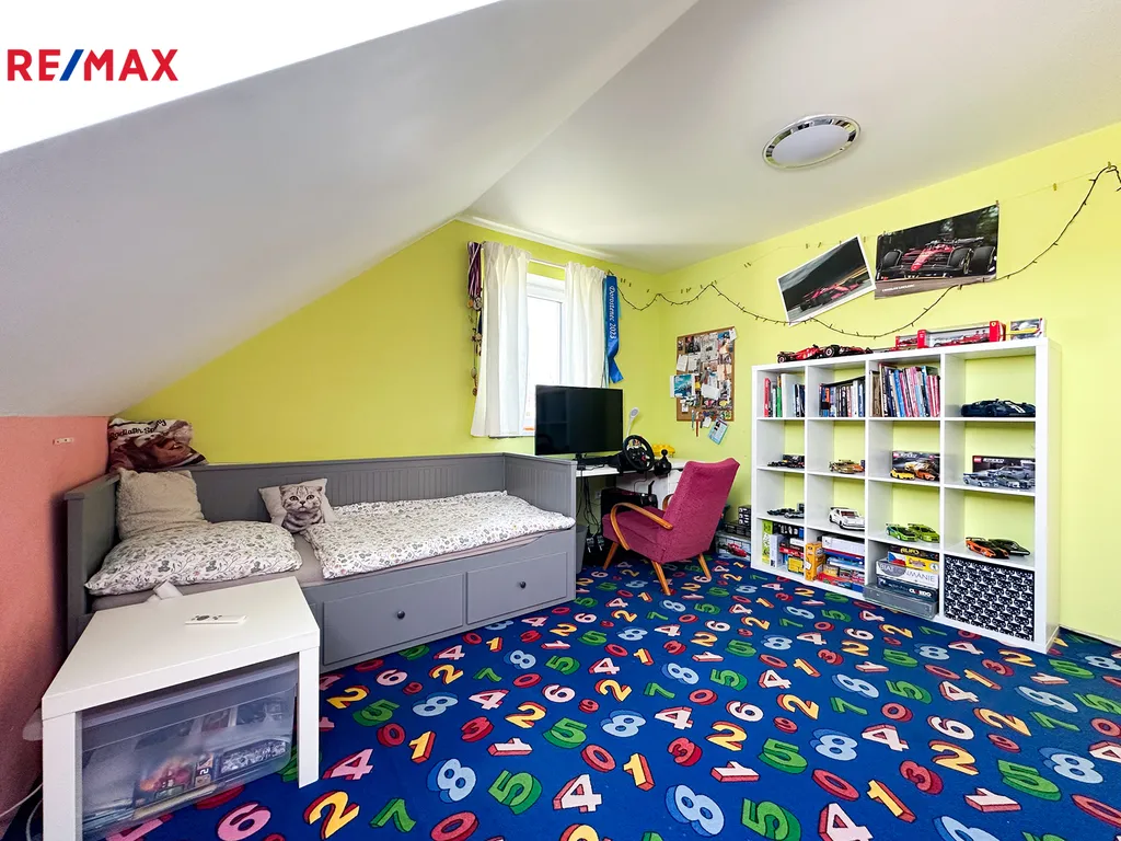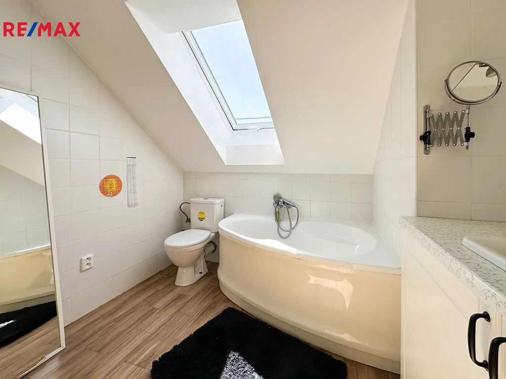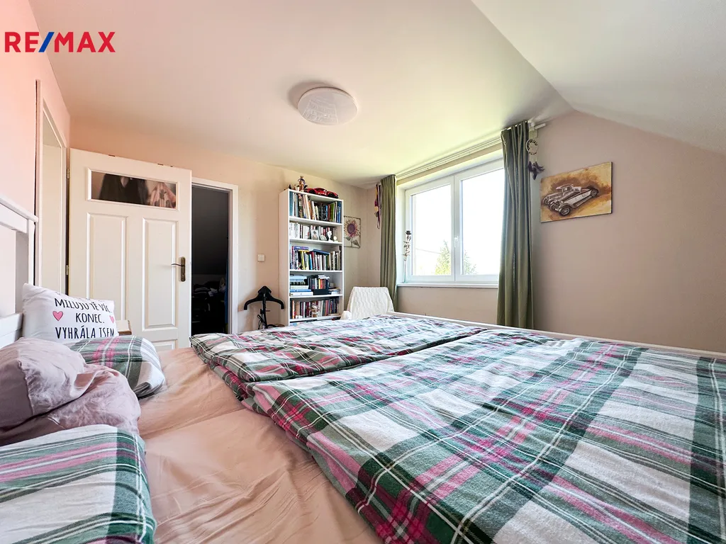 V patře domu se nachází hlavní ložnice se samostatnou šatnou, tři další ložnice a koupelna s toaletou. Součástí domu je také garáž pro jeden automobil.