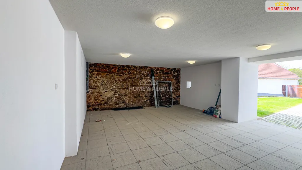 Velkou výhodou této nemovitosti je také krytý venkovní prostor, který lze využít například pro parkování aut, uskladnění kol nebo jako relaxační zónu.