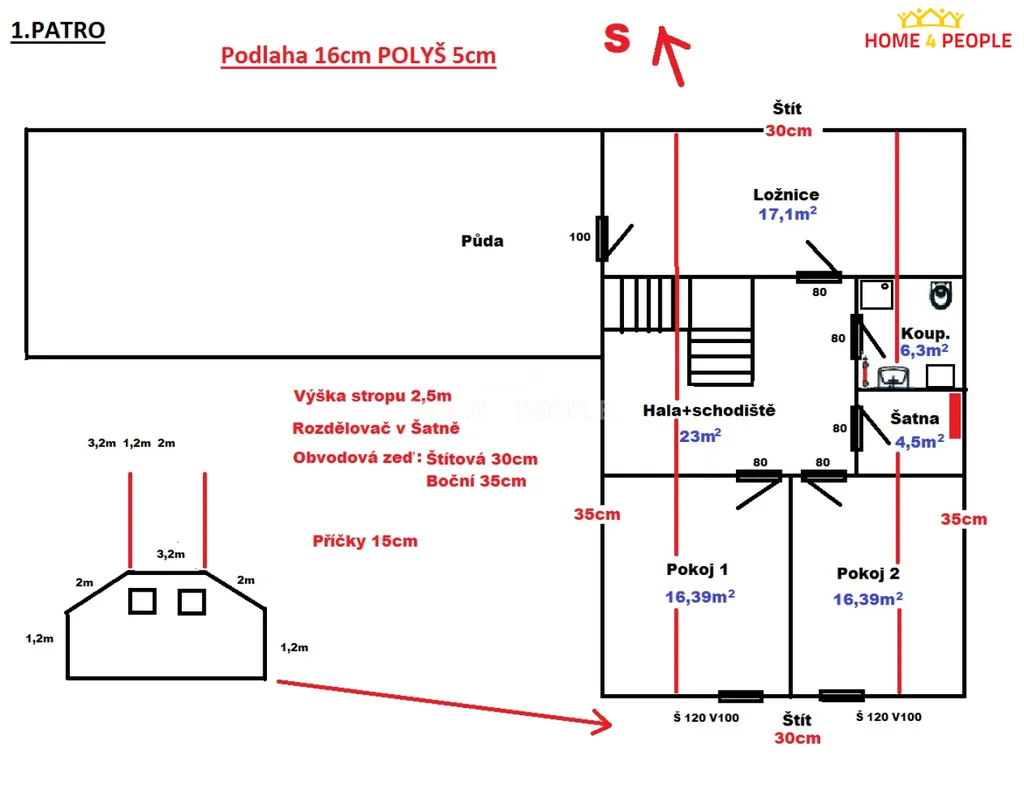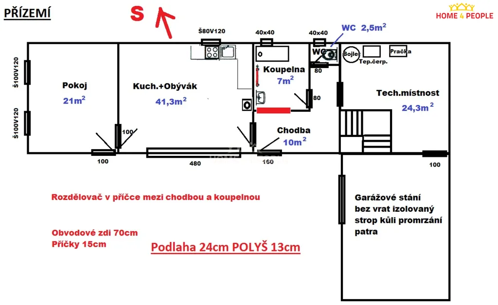 V domě dále najdete čtyři samostatné pokoje, dvě koupelny a technické zázemí. Dispozice domu je velmi praktická a nabízí dostatek prostoru i soukromí pro každého člena rodiny. Stavba je provedena z kvalitních cihelných materiálů a splňuje moderní standardy energeticky úsporného bydlení, což zajišťuje nízké provozní náklady.