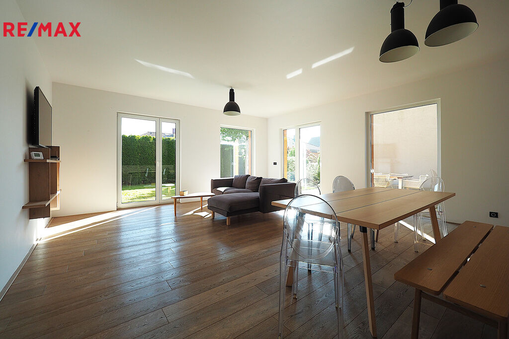 Pohodlné parkování je zajištěno jak v garáži, tak přímo před domem. Bezbariérový přístup dává možnost přístupu do objektu, z garáže se dostanete "suchou nohou" přes zázemí do přízemí domu. Zahrada nabízí prostor pro odpočinek, relaxaci a na verandě v závětří si můžete vychutnávat příjemné chvíle venku s rodinou a přáteli.