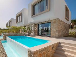 Vila nabízí 156 m2 obytné plochy na pozemku o velikosti 301 m2 a je rozložena do dvou podlaží. V přízemí se nachází vstupní hala, moderní otevřený obývací prostor propojený s kuchyní a jídelnou, samostatná toaleta a přímý vstup na terasu s privátním bazénem, sluneční terasou a upravenou zelení. Zadní dvůr za domem nabízí další klidné místo k odpočinku a celoroční přísun denního světla.
