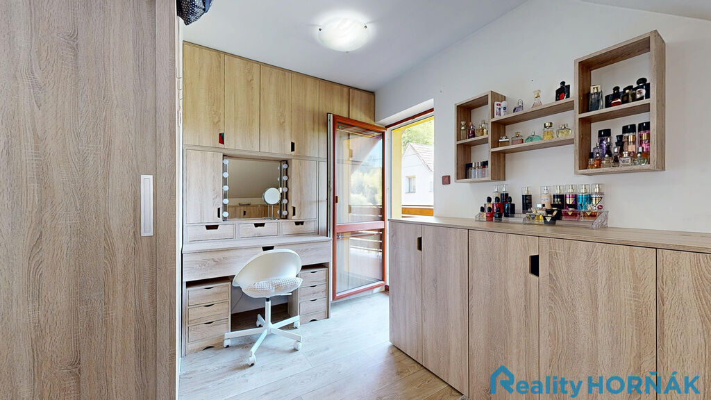 Skutečný stav nemovitosti si nejlépe prohlédnete ve virtuální prohlídce (3D sken nemovitosti – Matterport), která je součástí inzerce. Po zaškrtnutí ikony červeného křesílka ve spodním menu virtuální prohlídky se Vám nemovitost zobrazí bez vybavení a zařízení, po zaškrtnutí ikony měřítka se Vám zobrazí rozměry místností.