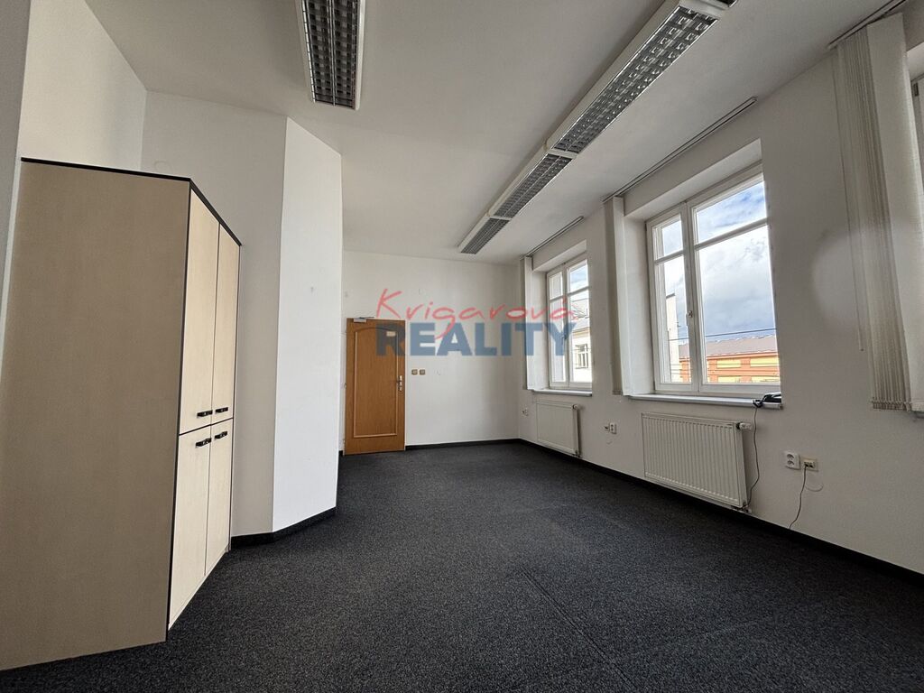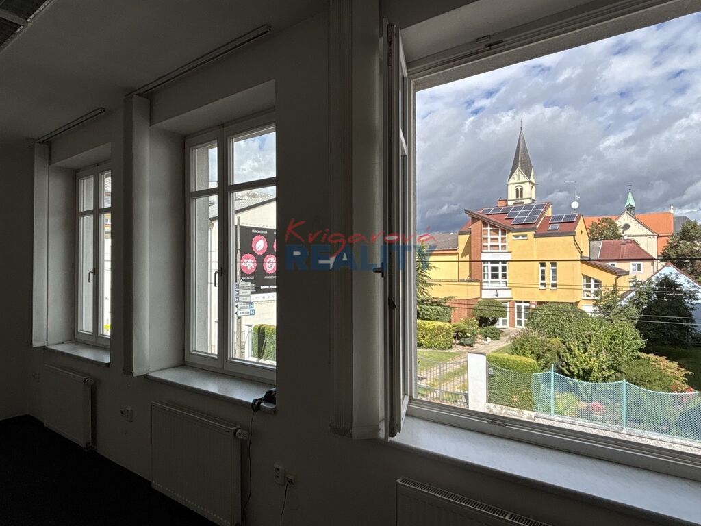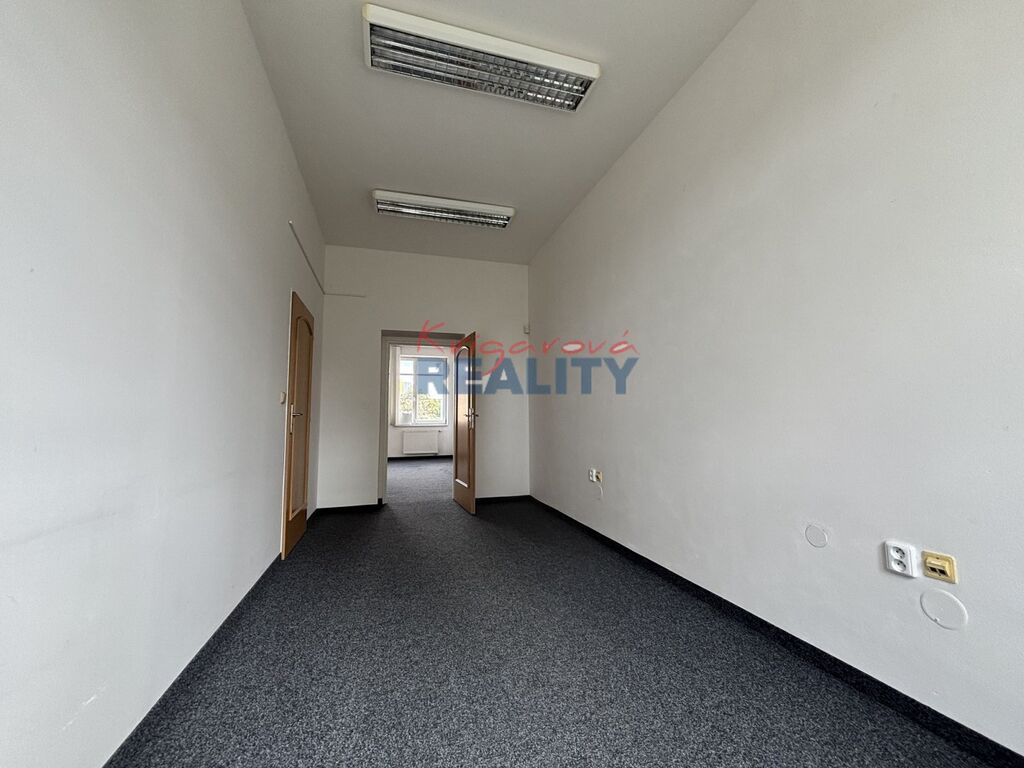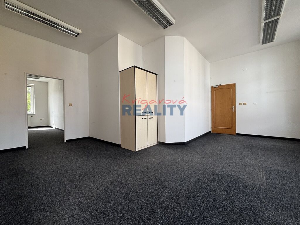 Ráda zprostředkuji pronájem dvou místností kanceláří, o velikosti 27m2 a 14m2 celkem 41m2. Kanceláře se nacházejí v bezbariérovém komerčním objektu v prvním patře. V domě nejsou byty, ale kanceláře, firmy, a živnostníci. Jedna místnost s okny na sever, druhá místnost na jih, v oknech žaluzie, toalety na chodbě, pánské, dámské, výtah, parkování ve dvoře. Prostory jsou reprezentativní. Okolí nemocnice, škola, MHD, obchody. Nájem 9500,- Kč; služby 2200,- Kč; záloha na el. 950,- Kč; na teplo 350,- Kč; vodné a stočné 140,- Kč; + DPH. K uvedenému prostoru jsou možná dvě parkovací místa, každé za 1800,- Kč/měs + DPH. Prostory volné od září 2025.