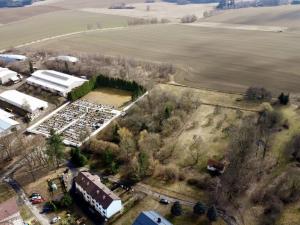 Na pozemku se nachází stromy a menší rozestavěné objekty. Ty mohou být podle potřeb nového vlastníka ponechány, nebo upraveny.