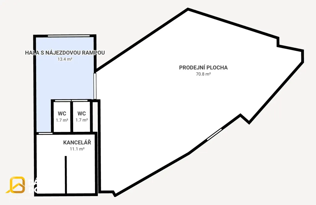 Nabízíme k pronájmu samostatné obchodní prostory o rozloze 99 m², ideálně situované v obci u hlavní silnice, s výbornou dopravní dostupností a vlastním parkovištěm pro zákazníky i zásobování.