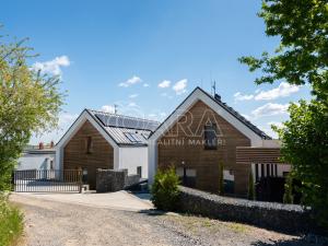 Nabízíme exkluzivní nízkoenergetickou vilu s bazénem a panoramatickým výhledem do údolí Únětického potoka.
