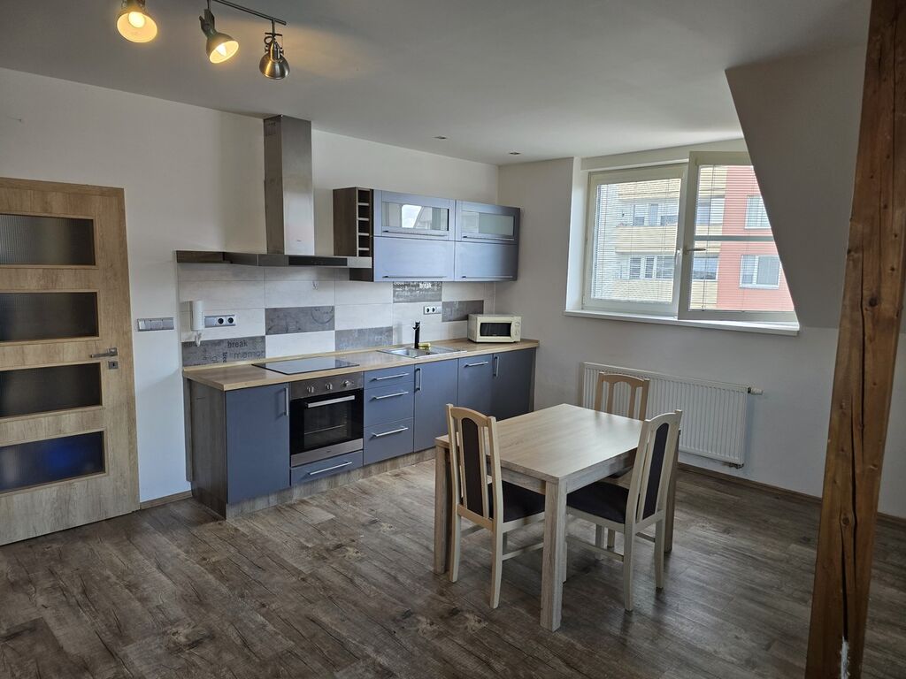 Nabízíme k pronájmu. Nabízíme byt 2+kk v centru Kladna, ul. Poděbradova č.p. 3329 o rozloze 52 m2. Byt je situován ve 4. a 5. NP. Jedná se o novostavbu z roku 2020 postavenou z pálených cihel, okna plastová, šestikomorová s trojsklem se žaluziemi, celý dům je zateplený, včetně výtahu s možností uložení kočárku či kola. Byt disponuje předsíní se vstupem do prostorné koupelny s WC se sprchovým koutem a pračkou a do obývacího pokoje, z kterého vedou schody do mezonetu s jedním otevřeným pokojem vhodným jako pokoj pro děti či oddělenou ložnicí. Obývací pokoj je spojený s kuchyňským koutem, vybaveným sklokeramickou varnou deskou včetně digestoře a el.troubou. K vybavení bytu patří vestavěná šatní skříň v předsíni. Vytápění je vlastním elektrickým kotlem a bojlerem s vlastním měřením energií elektroměrem přihlášeným již na vás. V předsíňi je dlažba a v obývacím pokoji plovoucí podlaha, v mezonetovém pokoji koberec. V případě potřeby je možné si k bytu domluvit parkovací místo pro automobil či motorku na soukromém pozemku-parkovišti.