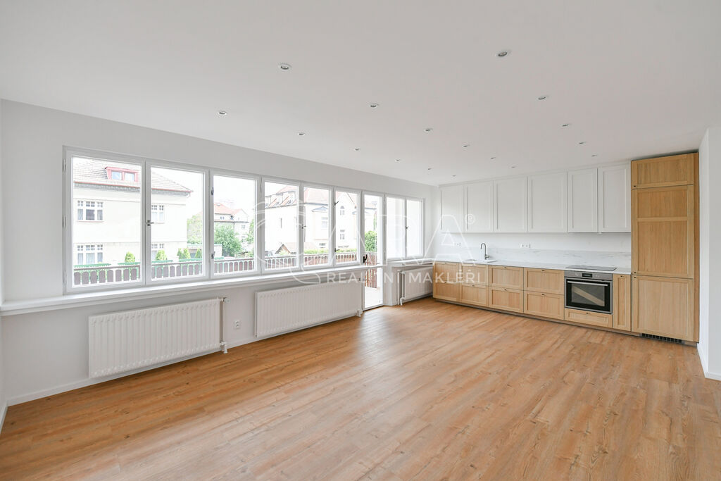 Exkluzivní nabídka pronájmu právě kompletně zrenovovaného bytu 3+KK v rodinném domě ve vilové čtvrti na adrese Nad Vodovodem, Strašnice. V bytě nikdo nebydlel, nájemník se bude stěhovat do zcela nového bytu.
