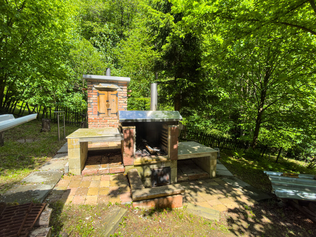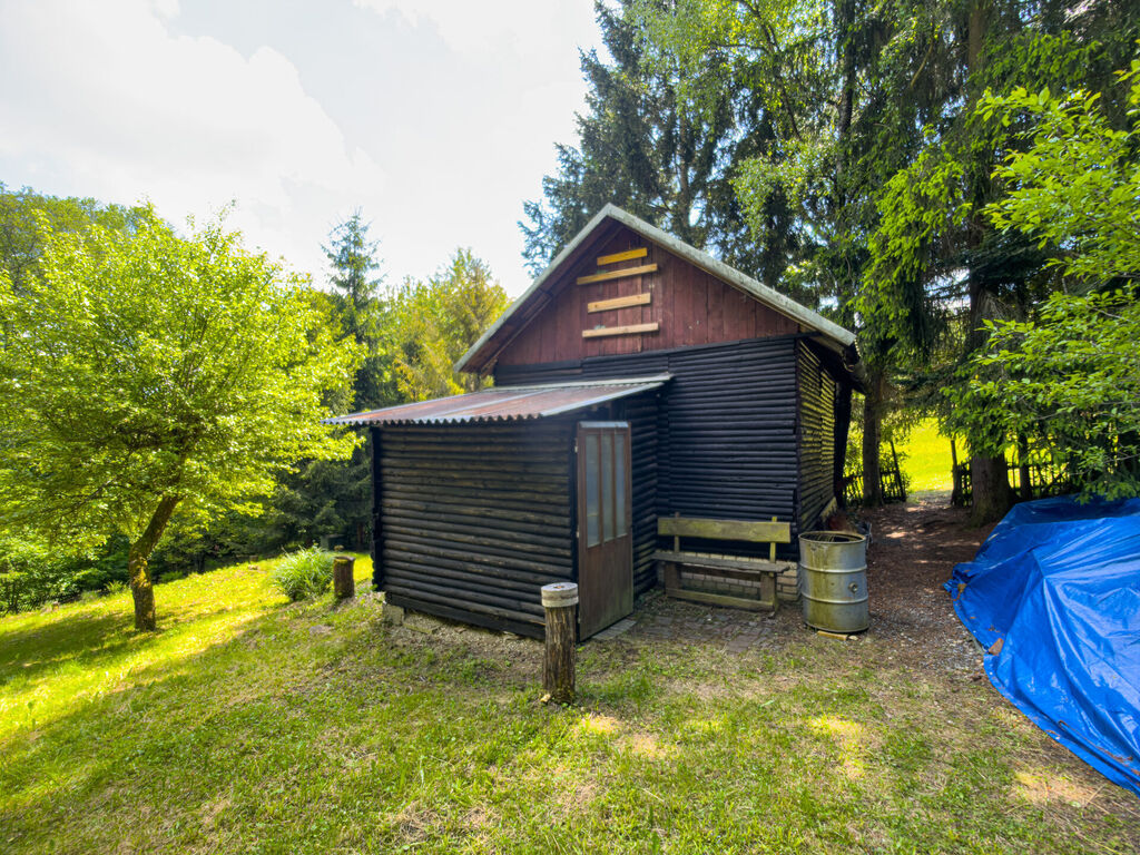 • Na pozemku stojí chata s číslem evidenčním 67 s celkovou užitnou plochou 41 m² se sklepem, posezením u krbu a udírnou