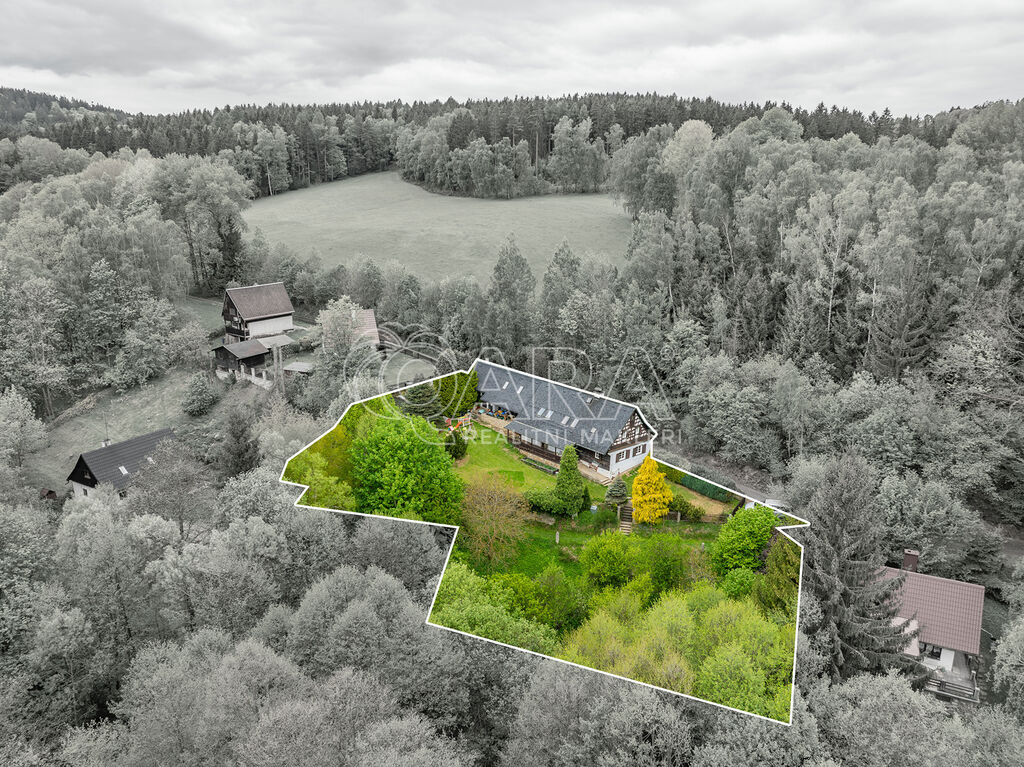 Celková výměra pozemku činí 1.838 m2 (včetně zastavěné plochy a nádvoří). Na pozemku se dále nachází prostorná dílna (18,4 m2) a zastřešený venkovní prostor/kovárna o výměře cca 44 m2. Bezproblémové parkování u chalupy na vlastním pozemku.