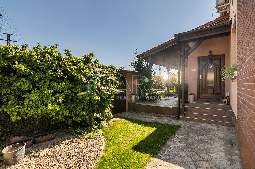 Hlavní dům o celkové ploše 160 m² ve dvou podlažích (1. NP 82,14 m², 2. NP 78,15 m²) se rozkládá na pozemku o výměře 610 m². Dispozičně je řešen jako 5+kk. Ve spodním patře se nachází prostorný obývací pokoj s kuchyňským koutem, ložnice, koupelna, samostatné WC, technická místnost a dvě spíže. V patře pak najdeme tři pokoje, z nichž jeden má samostatnou šatnu a další koupelnu s WC. Dům je napojen na obecní vodovod i kanalizaci. Vytápění domu a ohřev vody zajišťuje plynový kondenzační kotel; možnosti vytápění pak doplňují krbová kamna v obývacím pokoji.