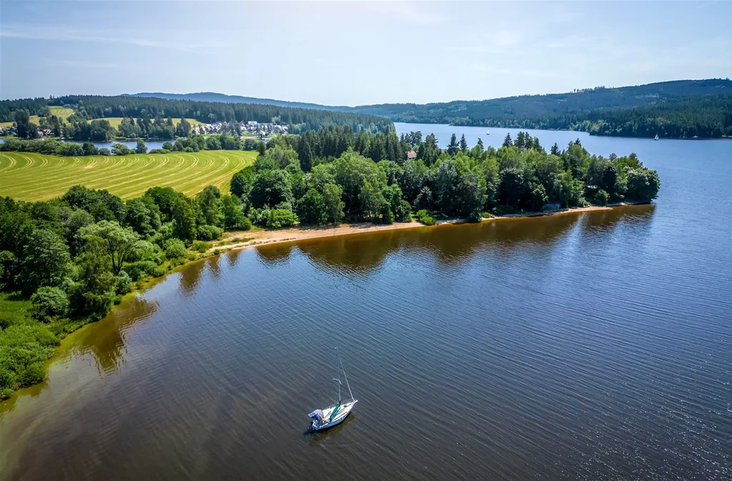 Tento exkluzivní pozemek pro rekreační dům Luxury chalet je součástí nového prémiového resortu VISION LIPNO přímo u břehu Lipna.