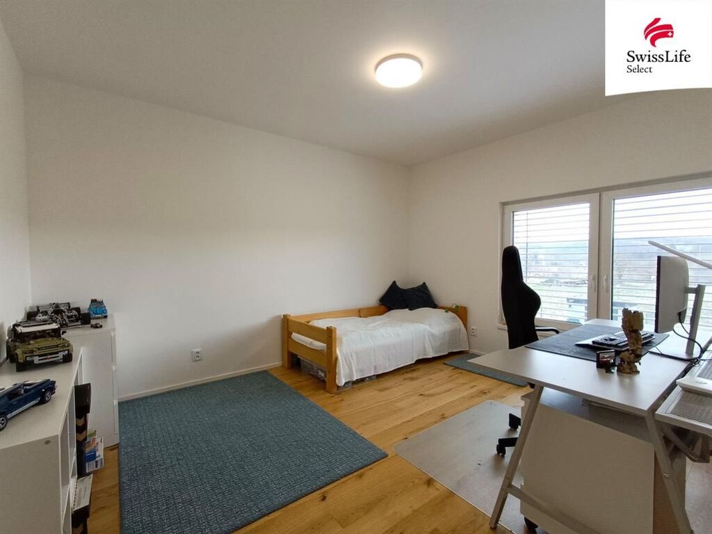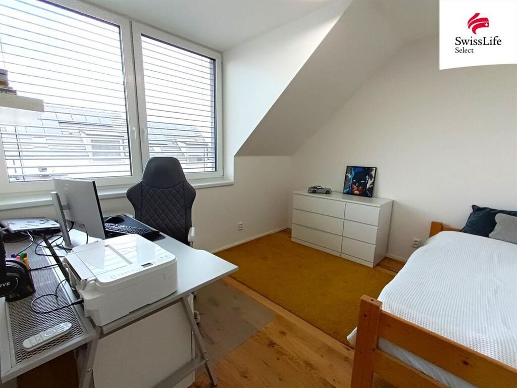 Na patře se nacházejí 2 menší ložnice, hlavní ložnice, šatna a rodinná koupelna. Přístupná půda pak poskytuje dostatek úložného prostoru.