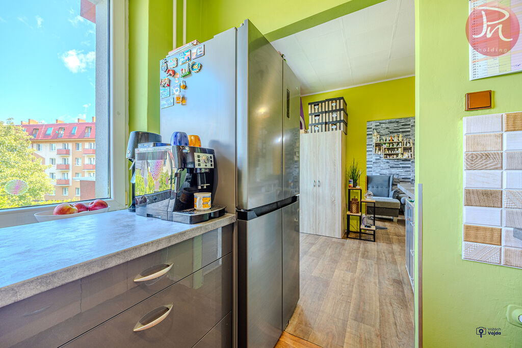 Dispozice je ideální – prostorný obývací pokoj, dvě ložnice, kuchyň s jídelnou, koupelna, samostatné WC a praktická komora. Díky velkým oknům je byt plný světla a působí příjemně otevřeně.