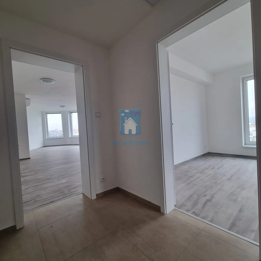 Naše společnost Vám nabízí pronájem prostorného a atypického bytu 2+KK, 83 m2, Plzeň - Slovany, ulice Železniční. Byt s nádherným výhledem se nachází v 7. nadzemním podlaží nového bytového domu s výtahem. Velmi slunný byt disponuje kuchyní s novou kuchyňskou linkou vyráběnou na zakázku se sklo-keramickou deskou, elektrickou troubou a digestoří, koupelna s vanou, umyvadlem a toaletou. K bytu náleží prostorná terasa 10,5 m2, která nabízí panoramatický výhled na celou Plzeň. Podlaha plovoucí a dlažba. Vytápění bytu centrální. Internet zaveden. Parkování v garážích v suterénu domu za měsíční poplatek. Více informací rádi poskytneme v realitní kanceláři nebo po telefonu.