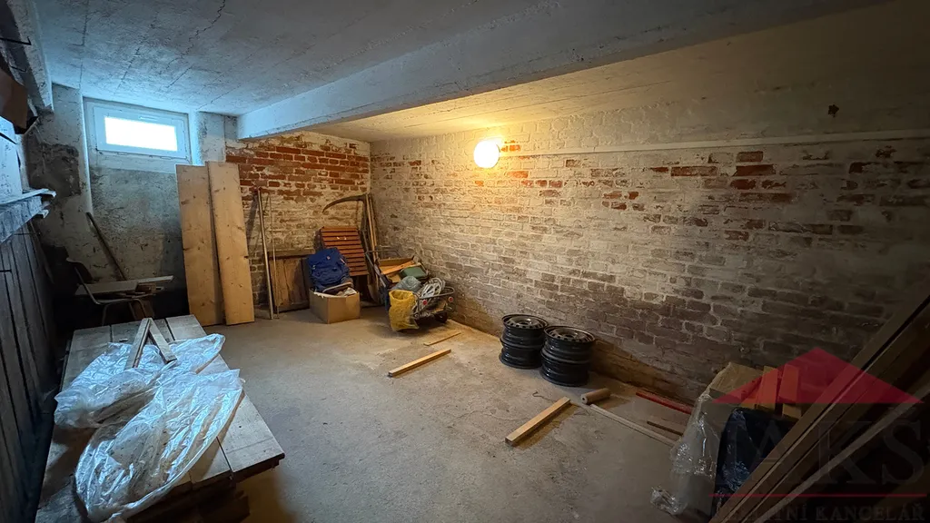 K bytu náleží vlastní velký sklep 17,16 m2, sklepní kóje na půdě (místo na sušení prádla) a podíl na společné zahradě, kde každý majitel má vymezenou svojí vlastní zahrádku (cca 52 m2; záhon a zelená plocha na posezení pod vzrostlou třešní).